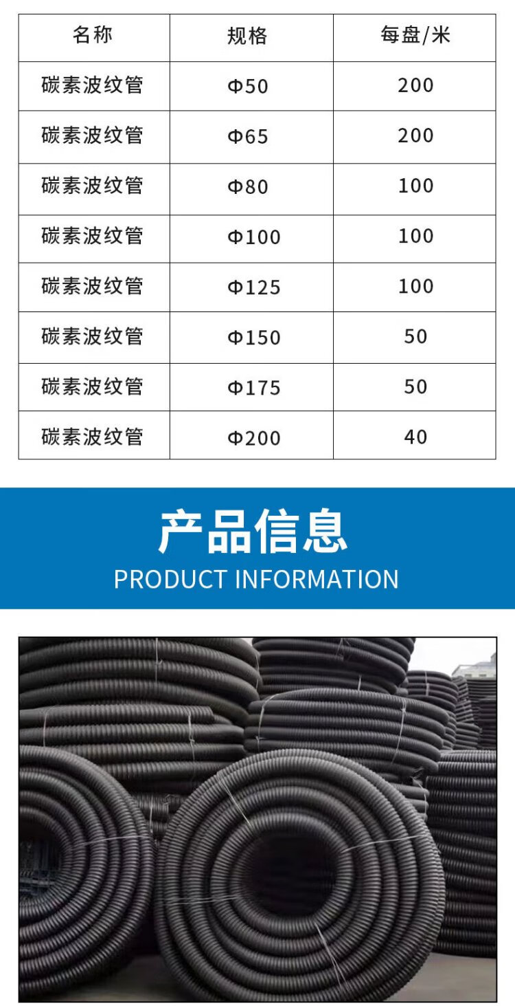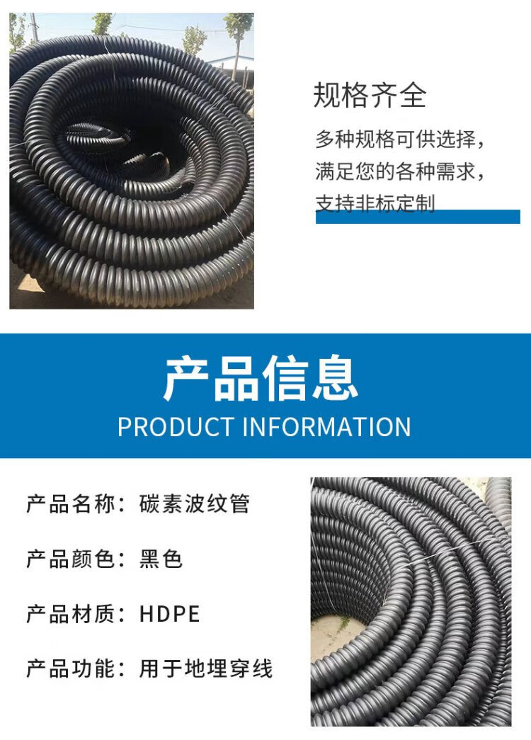 HDPE carbon corrugated pipe cable threading pipe threaded pipe buried black hose insulation monitoring pre-embedded protective sleeve delivery of the whole vehicle please consult customer service when placing an order 50mm ordinary price per meter does not include tax and transportation
