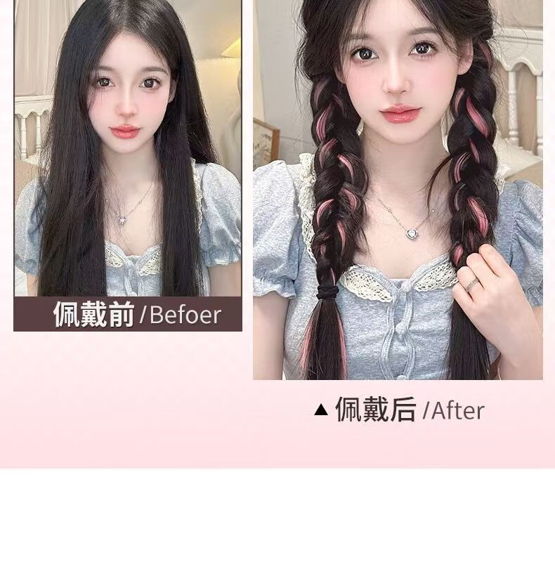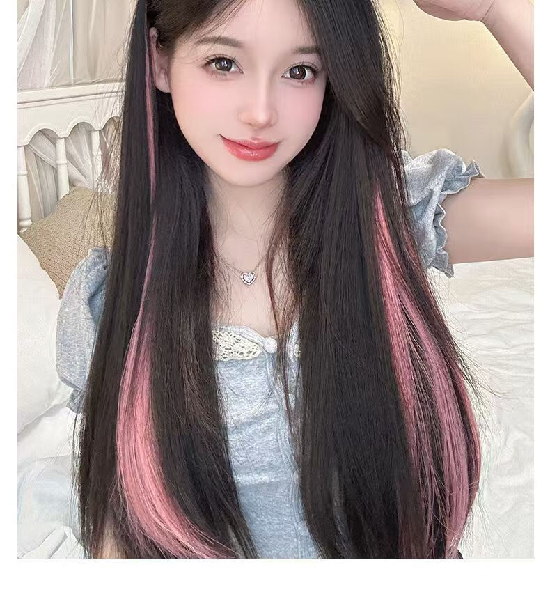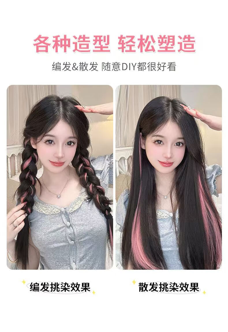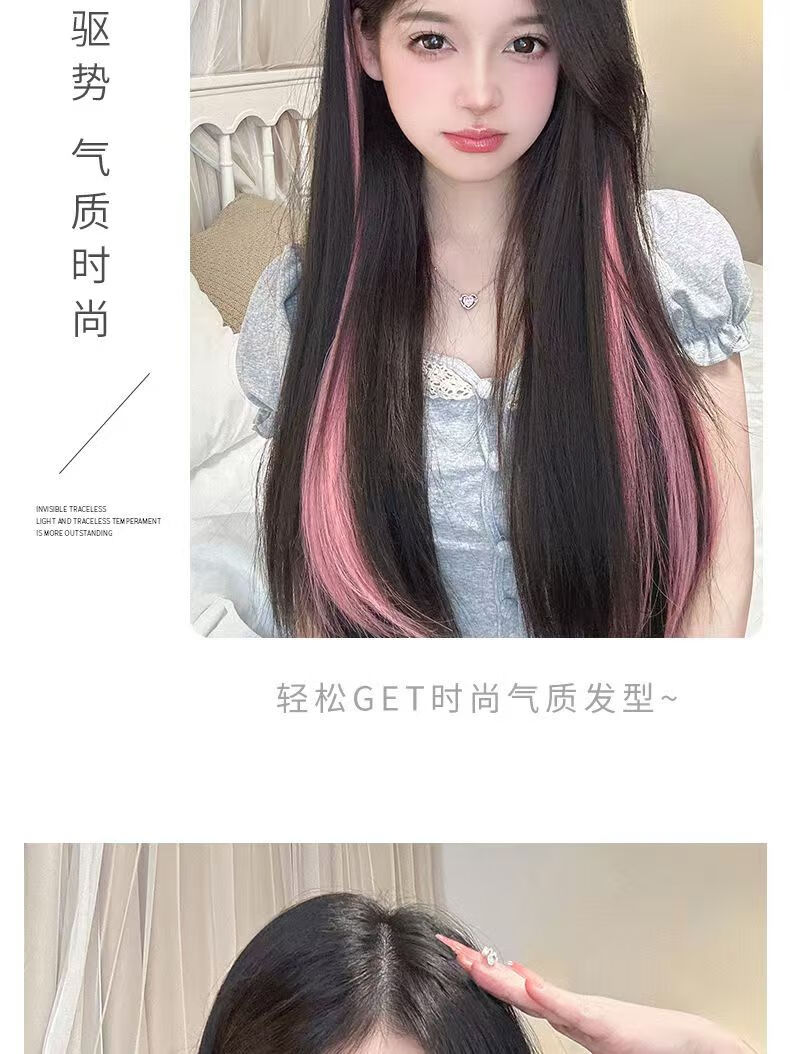 One-piece straight hair extensions, hair extensions, ear-hanging dyed colored wigs for women with long and short hair, highlights, gradient, invisible, traceless and natural, no intranet, ear-hanging dyeing, wine red, two pairs