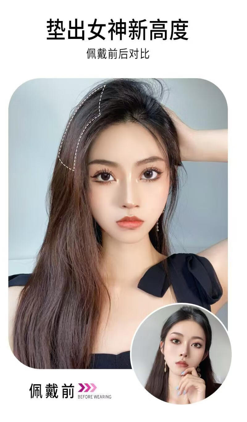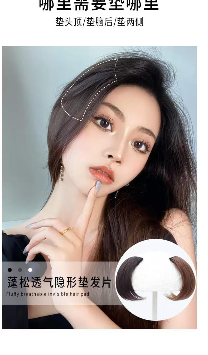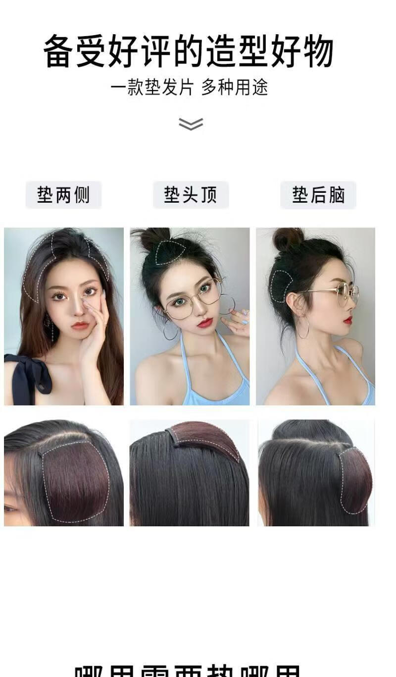 Wig volume increase volume puffer invisible patch artificial hair one piece seamless thickening hair roots on both sides of the head hair pad 10cm natural black two pieces