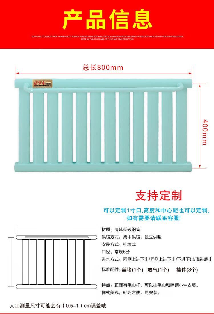 DIONO radiator steel radiator small basket radiator bathroom horizontal single hanging household towel bar rack 450mm total length (7-column flat plate) center distance 40 cm
