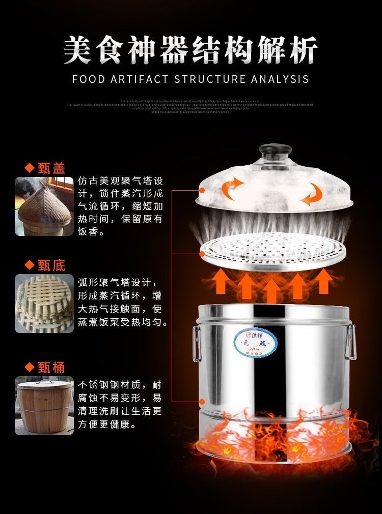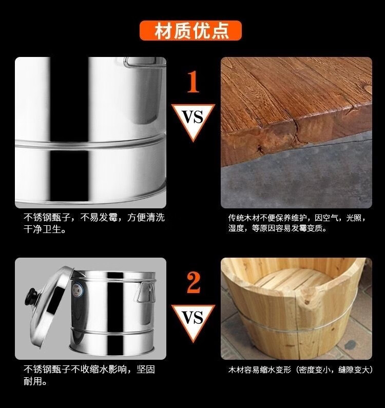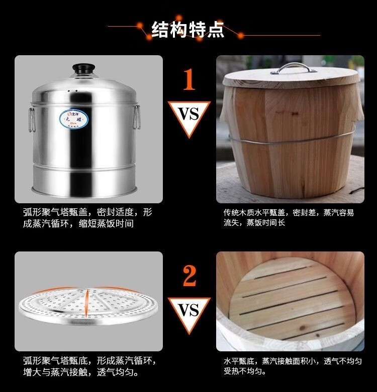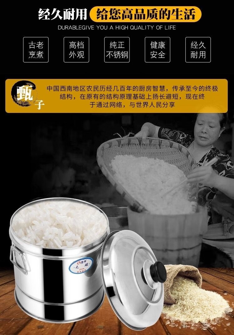 Baichunbao steamed rice bucket 304 stainless steel steamed rice steamed rice 304 steamed rice Zhenzi Zhengzi steamed rice wooden bucket 7-9 people 4-8 catties rice T41 28cm