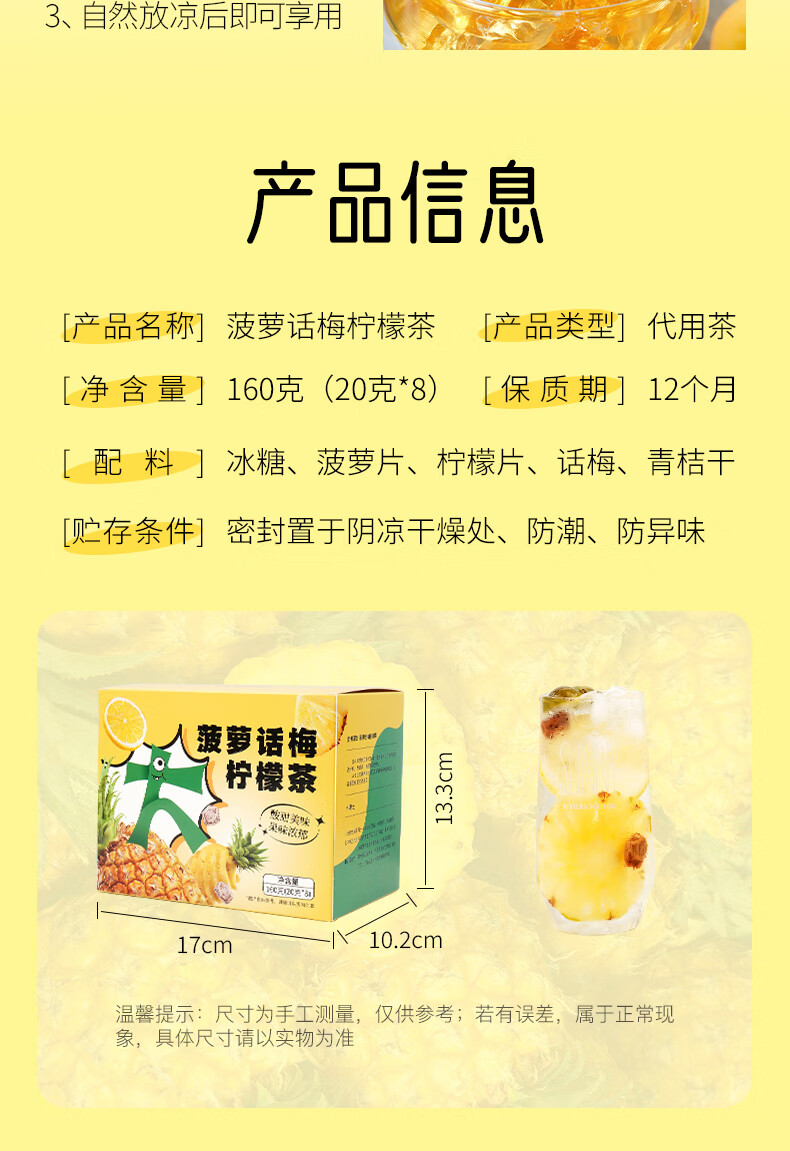 Xinglin Caotang pineapple plum lemon tea fruit tea packed frozen dried fruit pineapple plum lemon tea 3 boxes