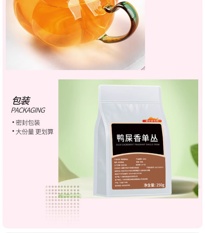 Weixiaofu Duck Shit Fragrance Phoenix Dancong Tea 500g Milk Tea Shop Special Authentic Hand-beaten Lemon Tea Dancong Oolong Tea Syrup 2 bags total 500g Highly Fragrant Duck Shit Fragrance