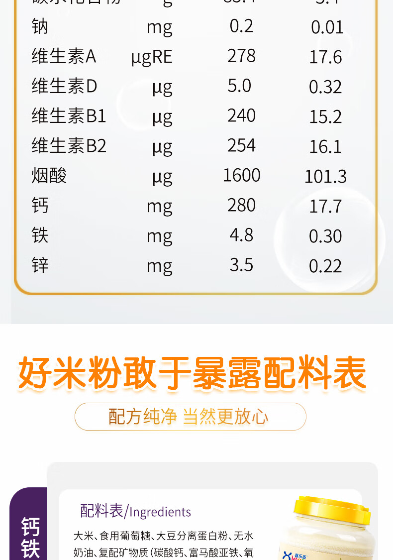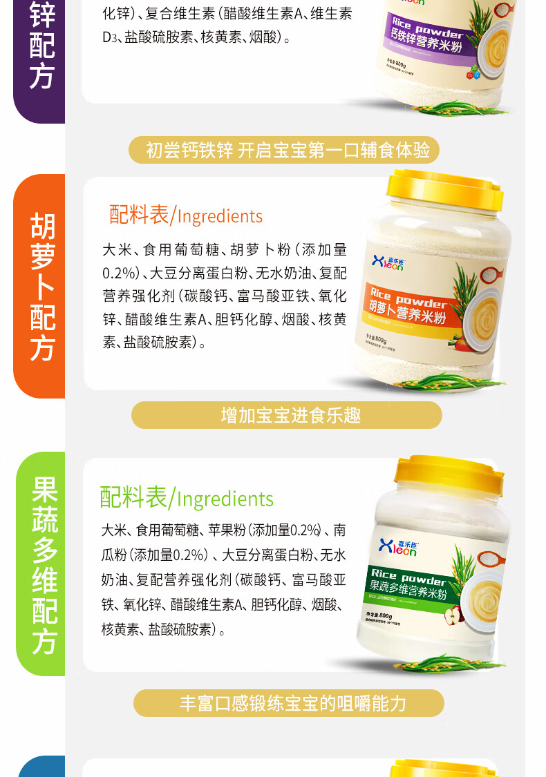 XLECN Baby Rice Noodles 1 Stage Baby Food Complementary Food 2 Stage Nutritious Rice Noodles and Rice Paste 800g Barrel Fine Powder Carrot