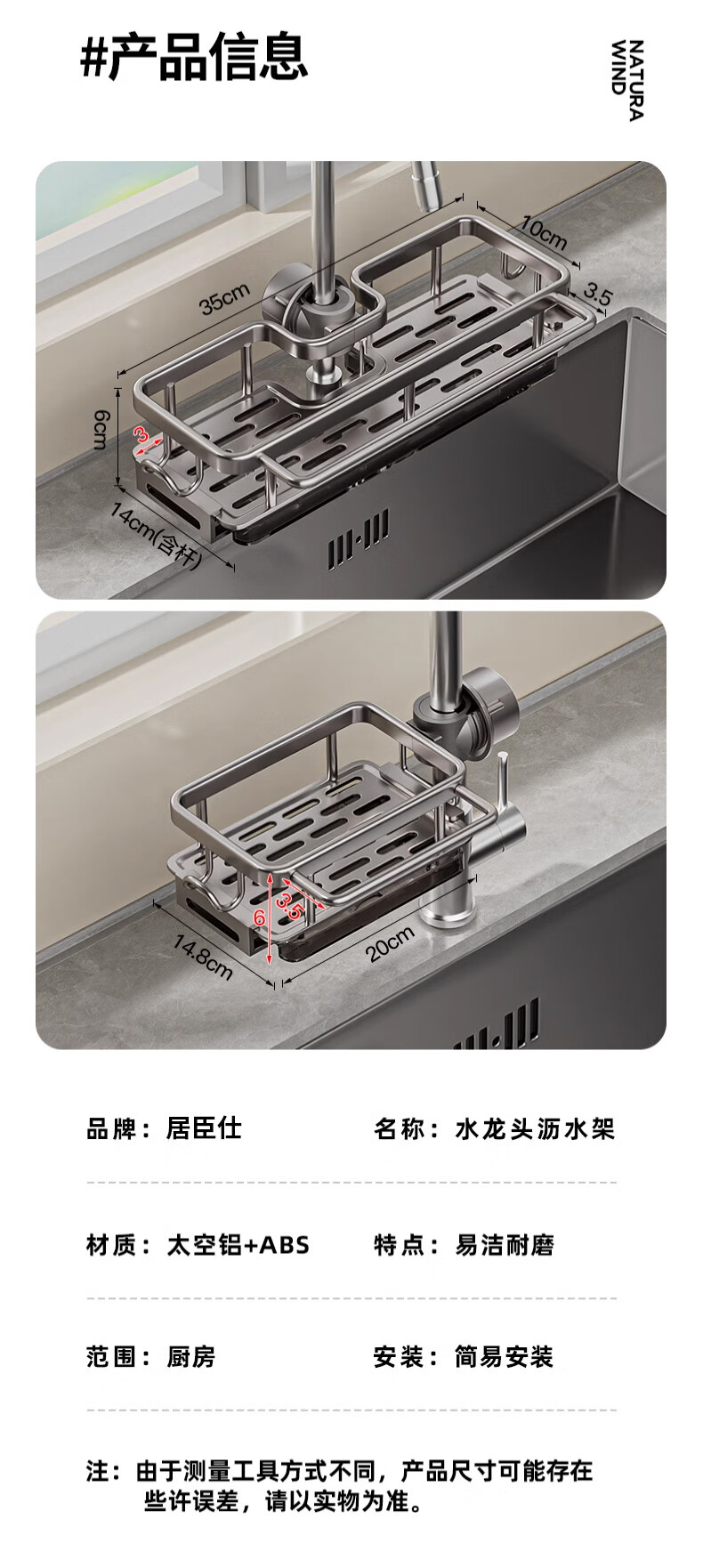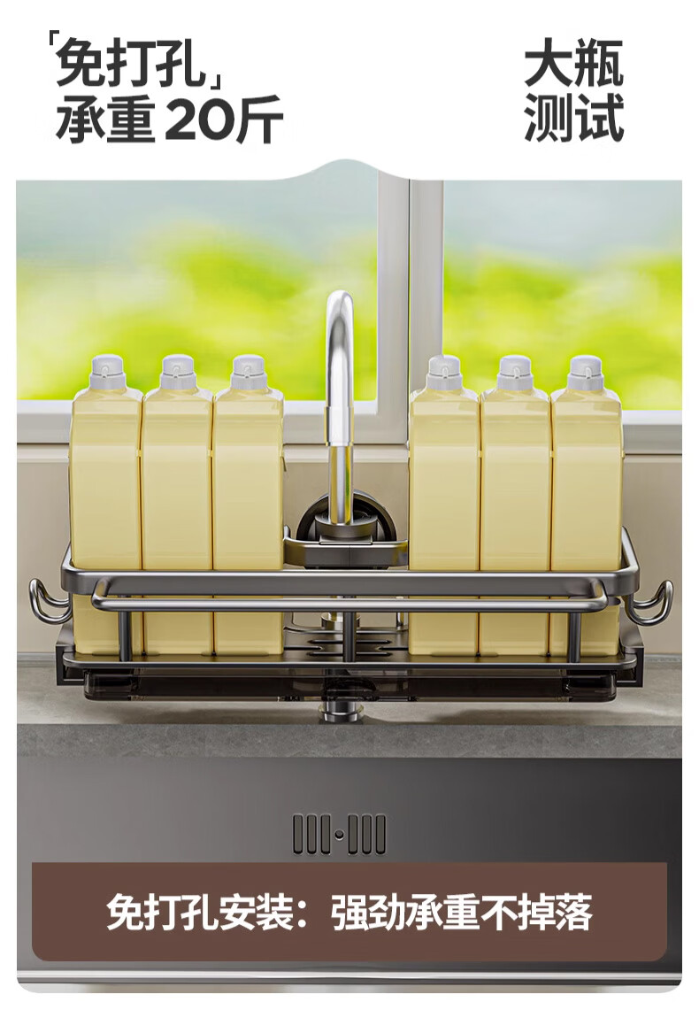 JCS kitchen faucet storage rack storage rack drain rack dishcloth dishwashing basin sink sink drain basket gun gray faucet drain basket - with rod on the left