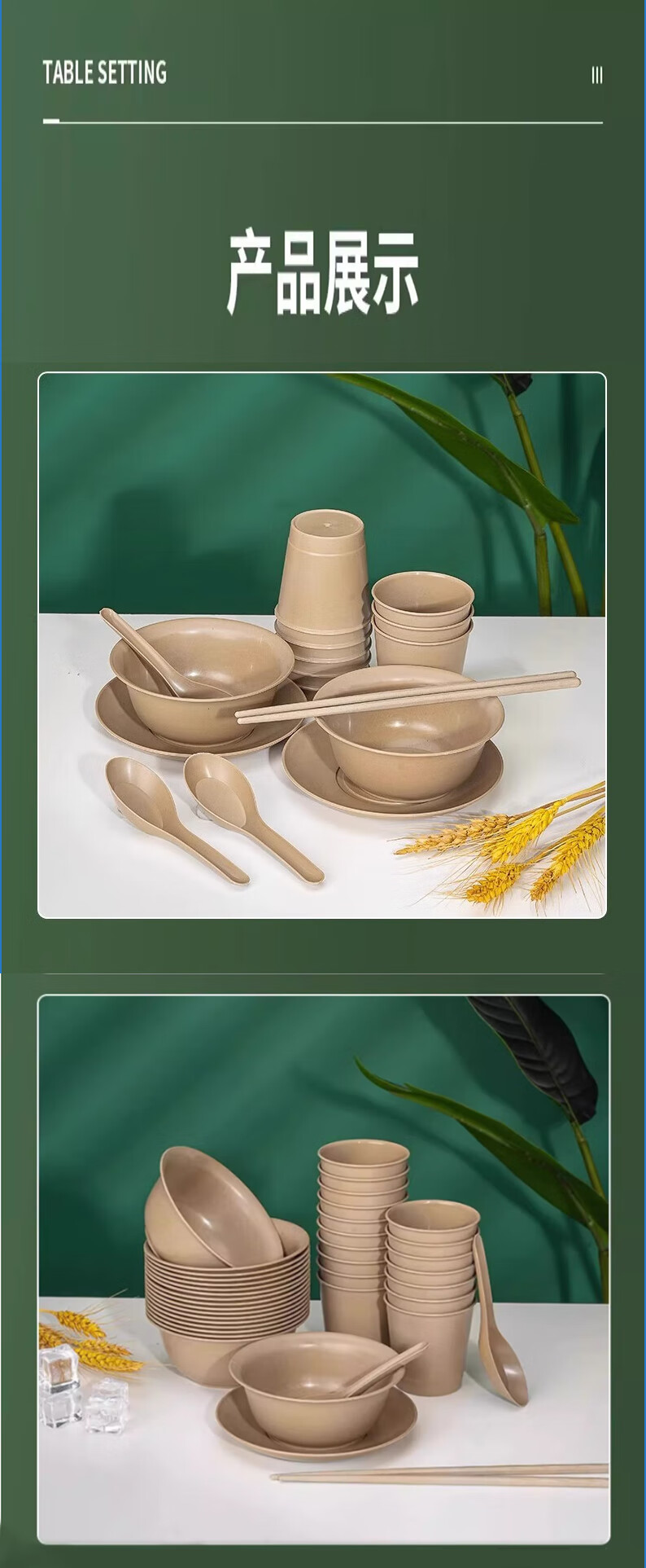 Shen Fu Disposable Tableware Set, Biodegradable Tableware Four-piece Set, Tableware, Cups, Spoons, Bone Dishes, Home Thickened, Rice Husk Original Color (Bowls, Cups, Dishes, Spoons), Individually Packed, 50 Sets, 4-Piece Set