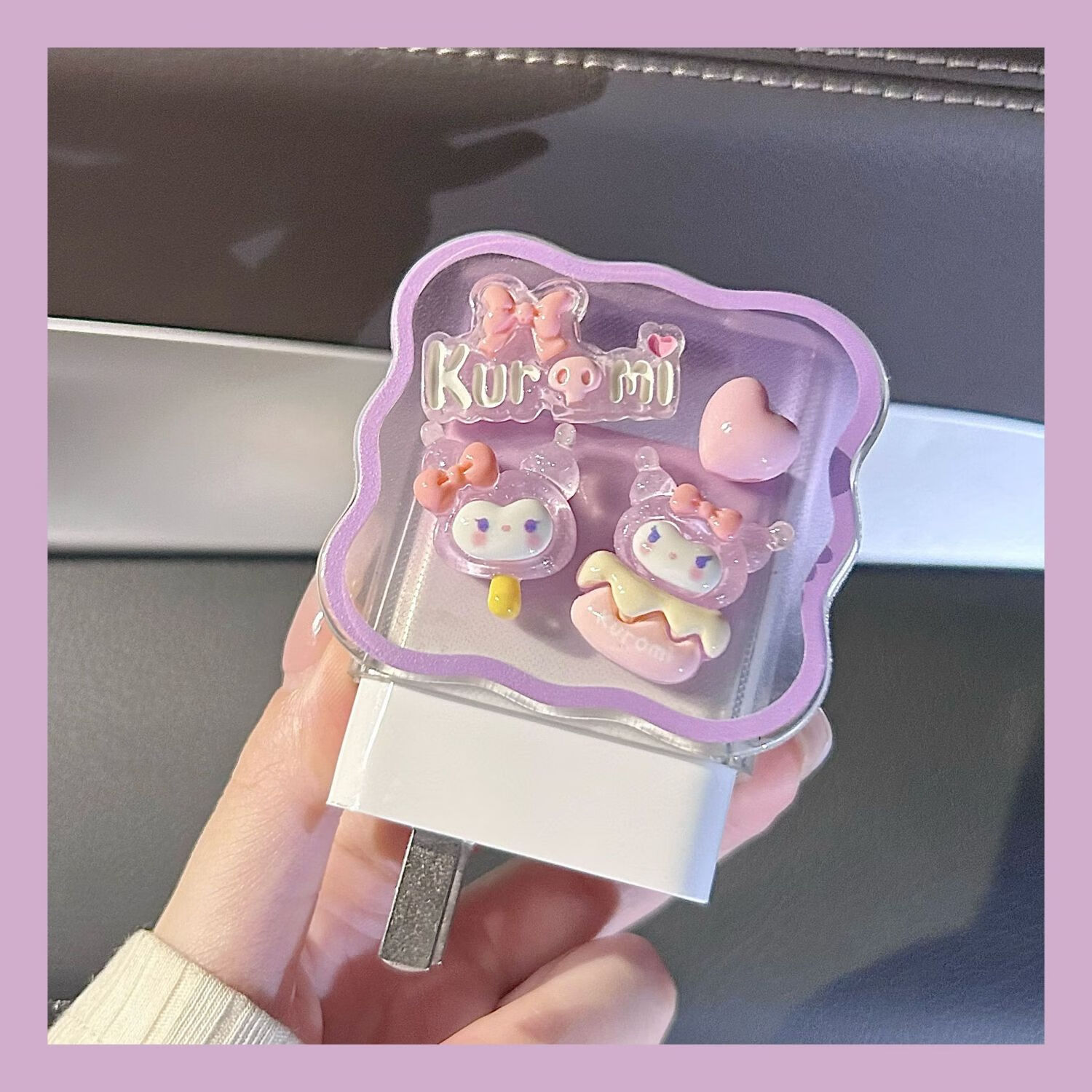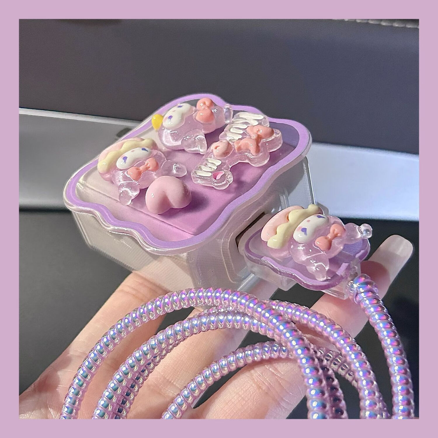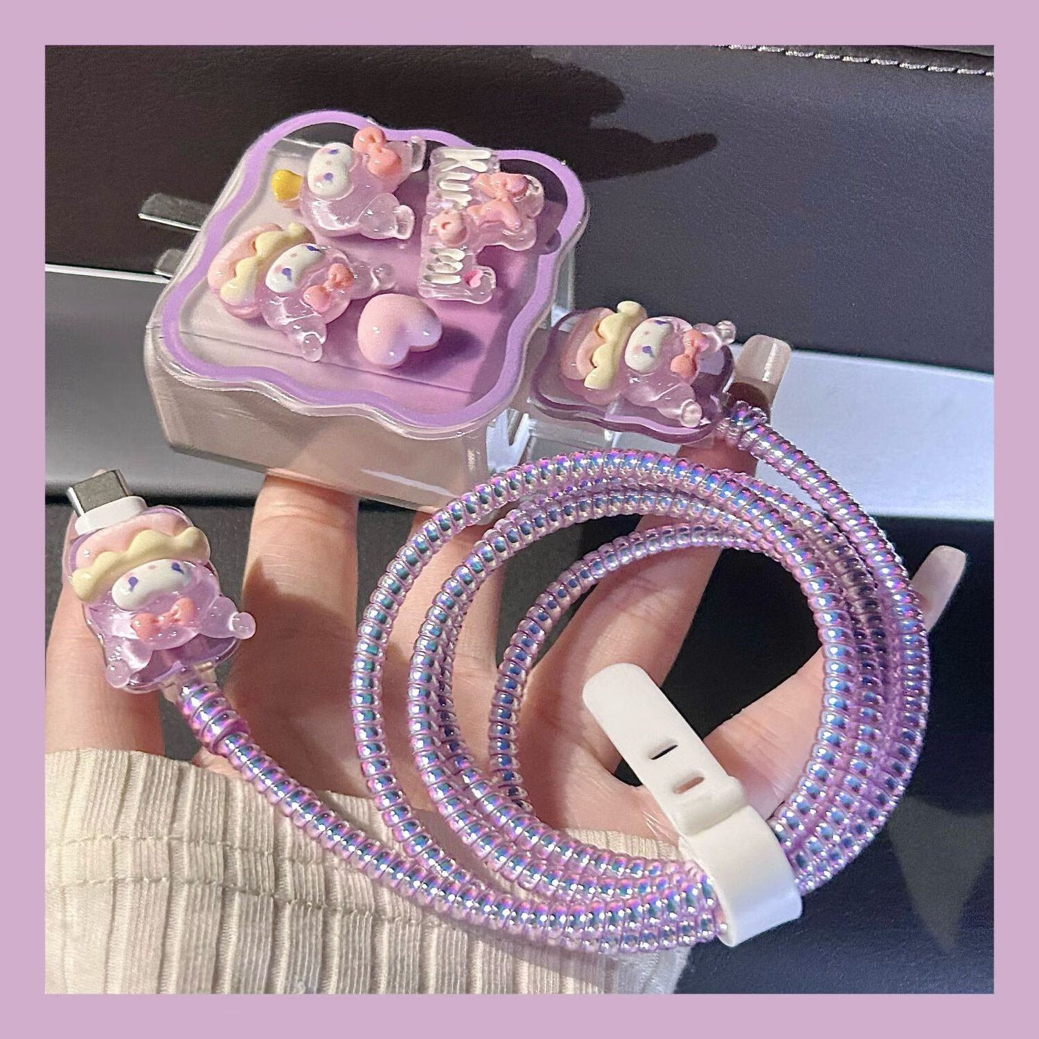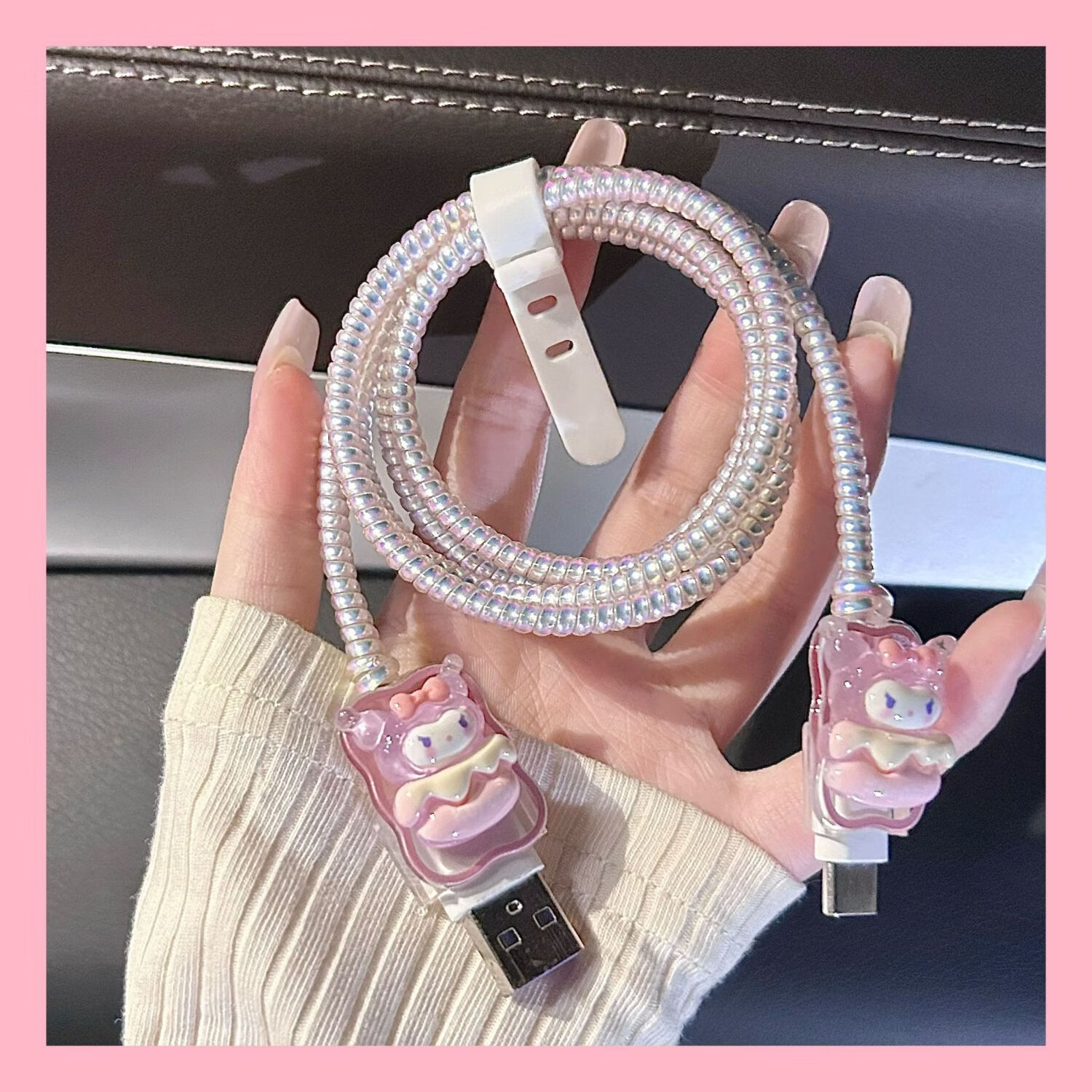 Lingyou Chuanghuo Data Cable Protective Case Huawei suitable for mate60pro charger protective case 66W universal anti-fall all-inclusive winding cute pura70 soft shell cartoon mate50 cable bite Culomi-Powder Set (USB+Type-C)
