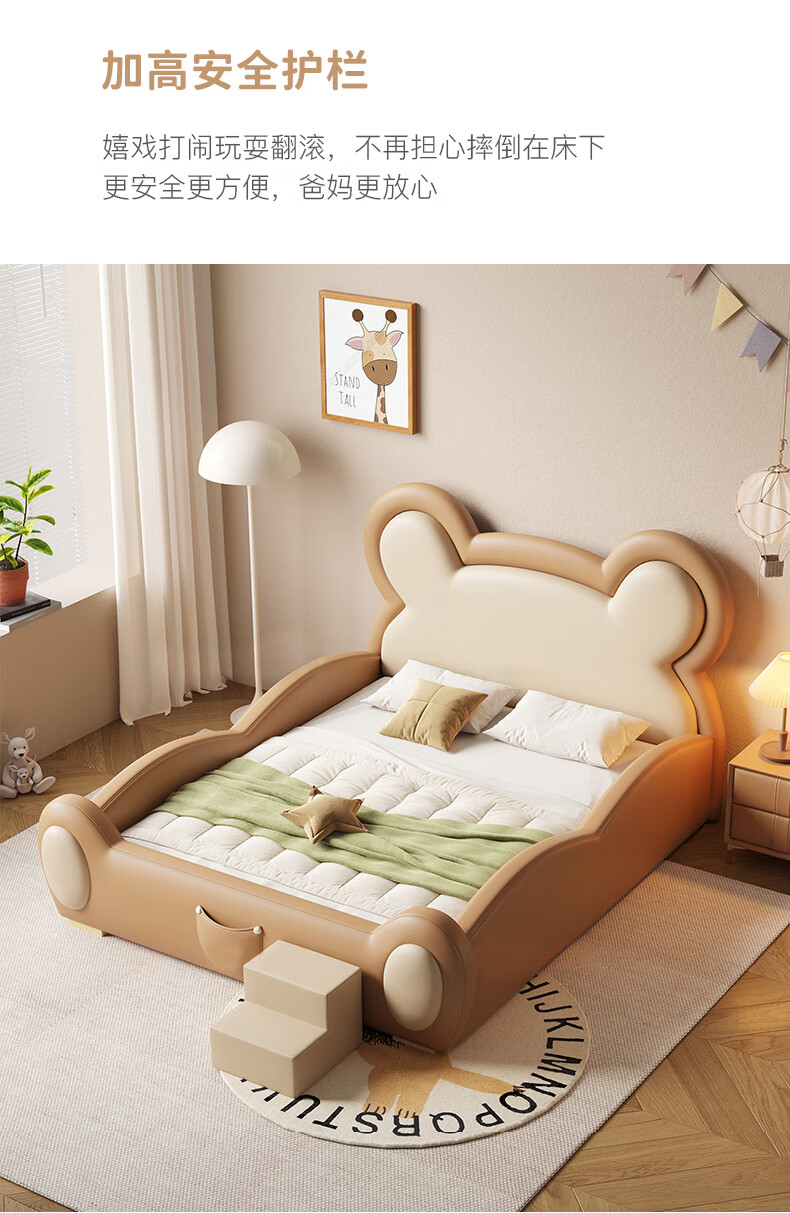Teenagers' new solid wood single children's bed 1.5m modern simple light luxury internet celebrity cartoon bear bed 1.8m bed children's bed color remarks 1.5m*2.0m frame structure