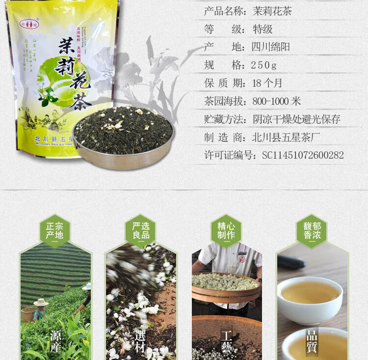 Shifang Yiqucheng brand Beichuan Jasmine Tea Special Sichuan Alpine Tea 250g bagged strong-flavor spring tea fried green