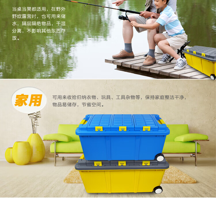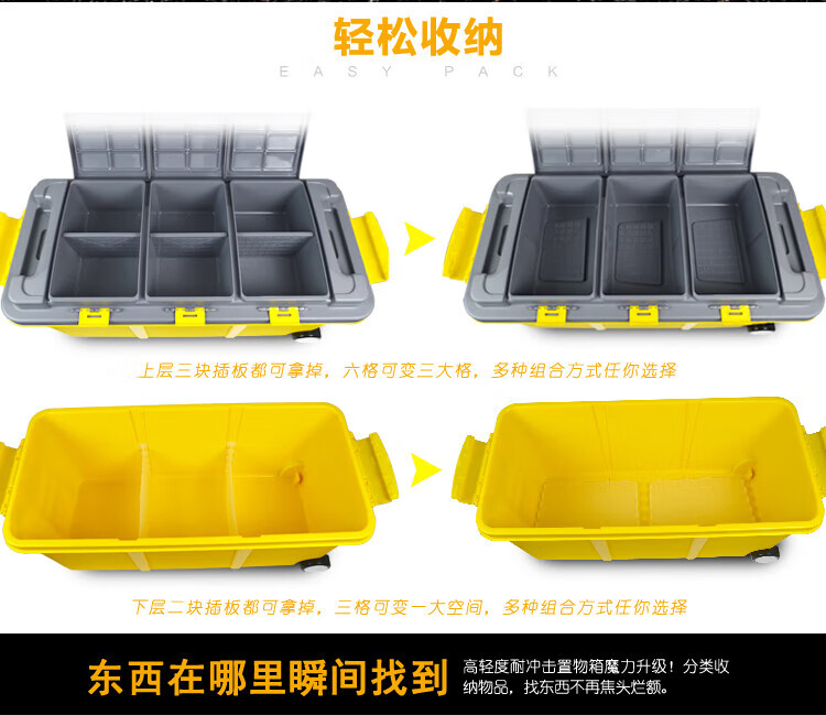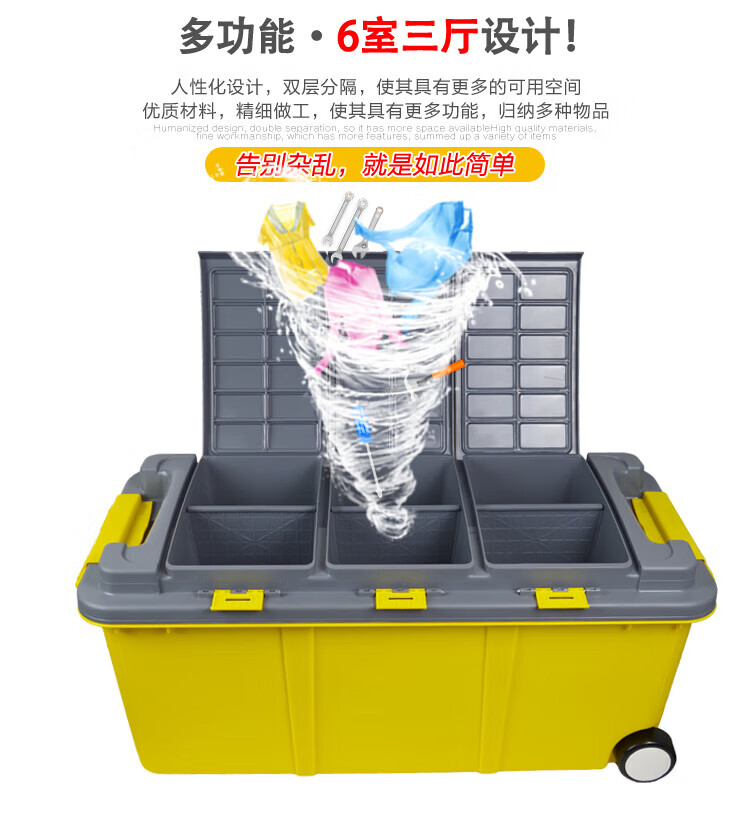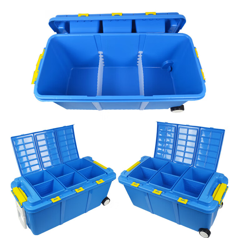 Shanbei car storage box trunk large double-layer storage box car multifunctional storage box 75L - sky blue (six rooms and three living rooms) with wheels