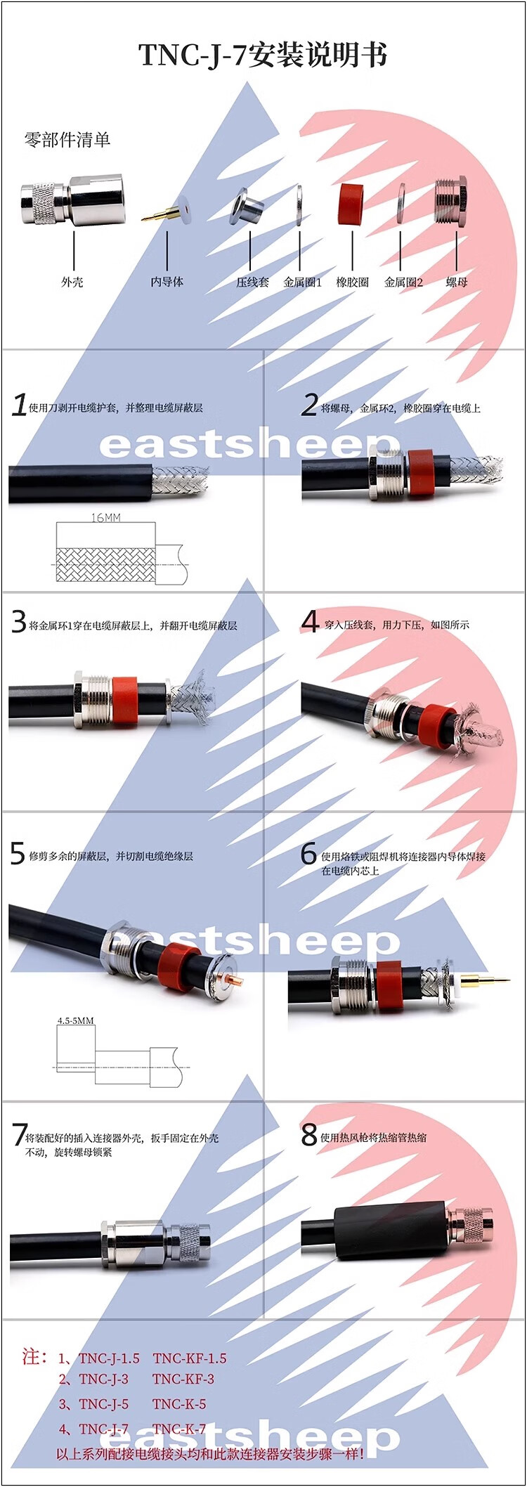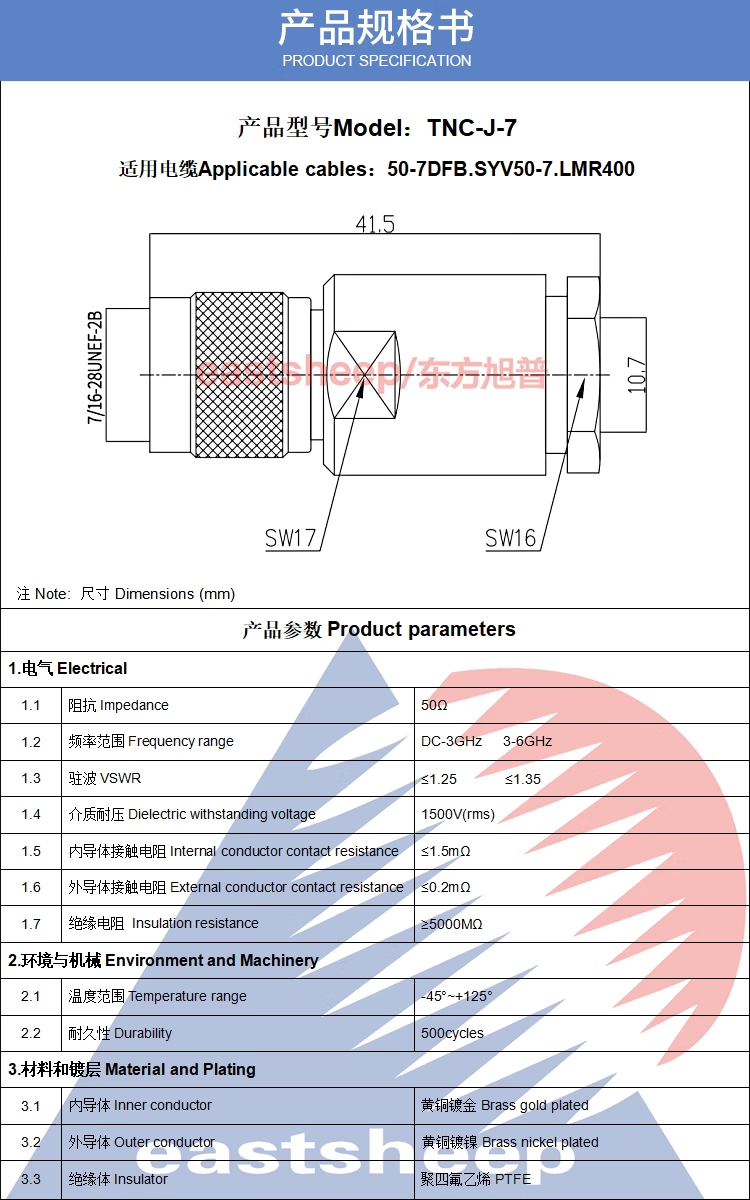 Dongfang Xupu TNC-J-7 installation inner pin welding TNC male matching 50-7/LMR400 cable TNC-J-7