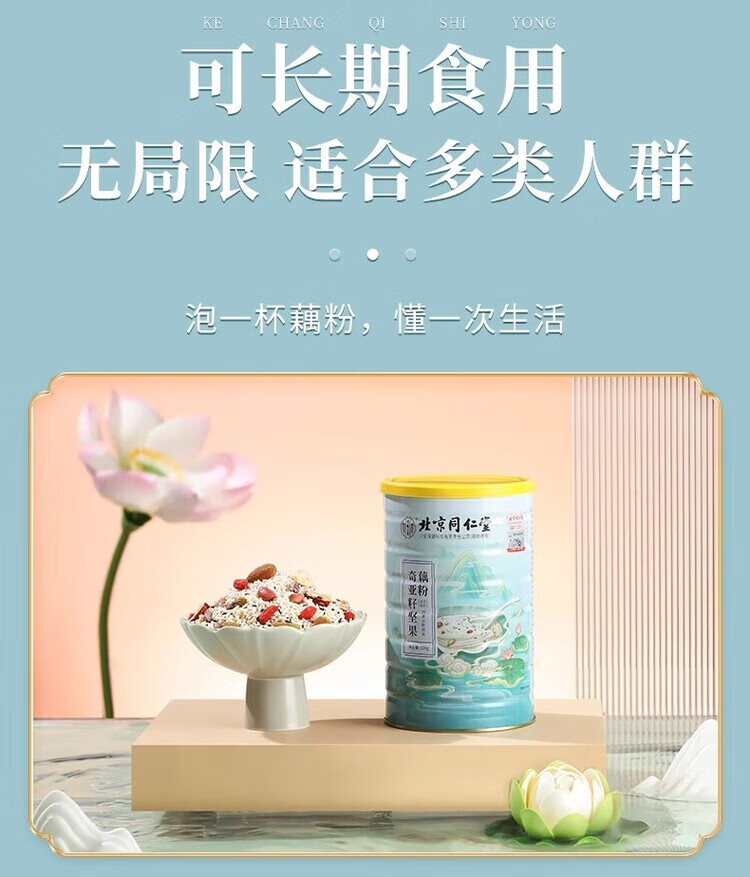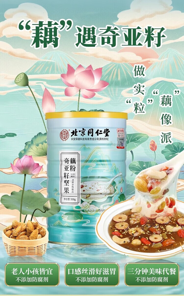 Tongrentang lotus root powder Tongrentang pure lotus root powder, jujube and lotus seed soup, lotus root powder, chia seed nuts, sugar-free stomach-nourishing breakfast, chia seed, nut and lotus root powder 500g*5 cans