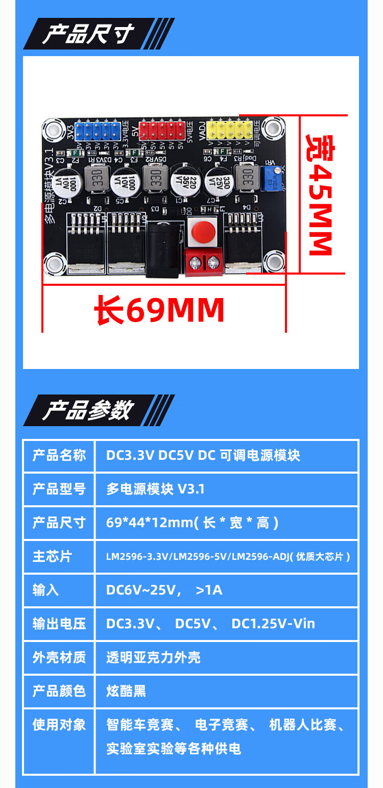 Green Shen DC power module 3.3V5V12V multi-channel output DC adjustable voltage regulator step-down conversion accurate and stable monitoring racing power supply module lm2596 LM2596 adjustable power module