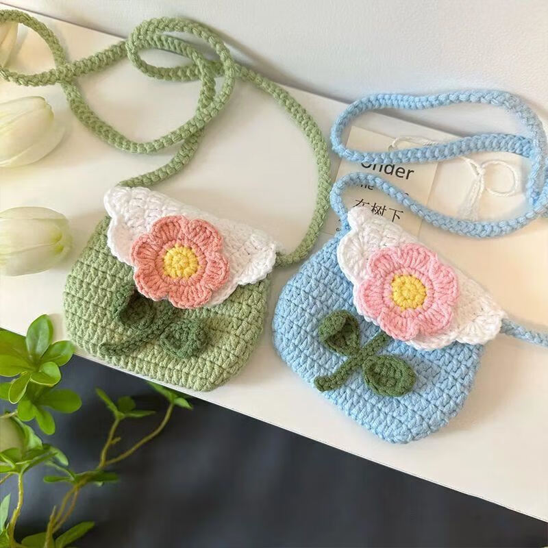 Beginner's wool crochet diy material bag hand-knitted puff flower shoulder crossbody bag coin purse card bag yellow material bag free full set of tools + tutorial