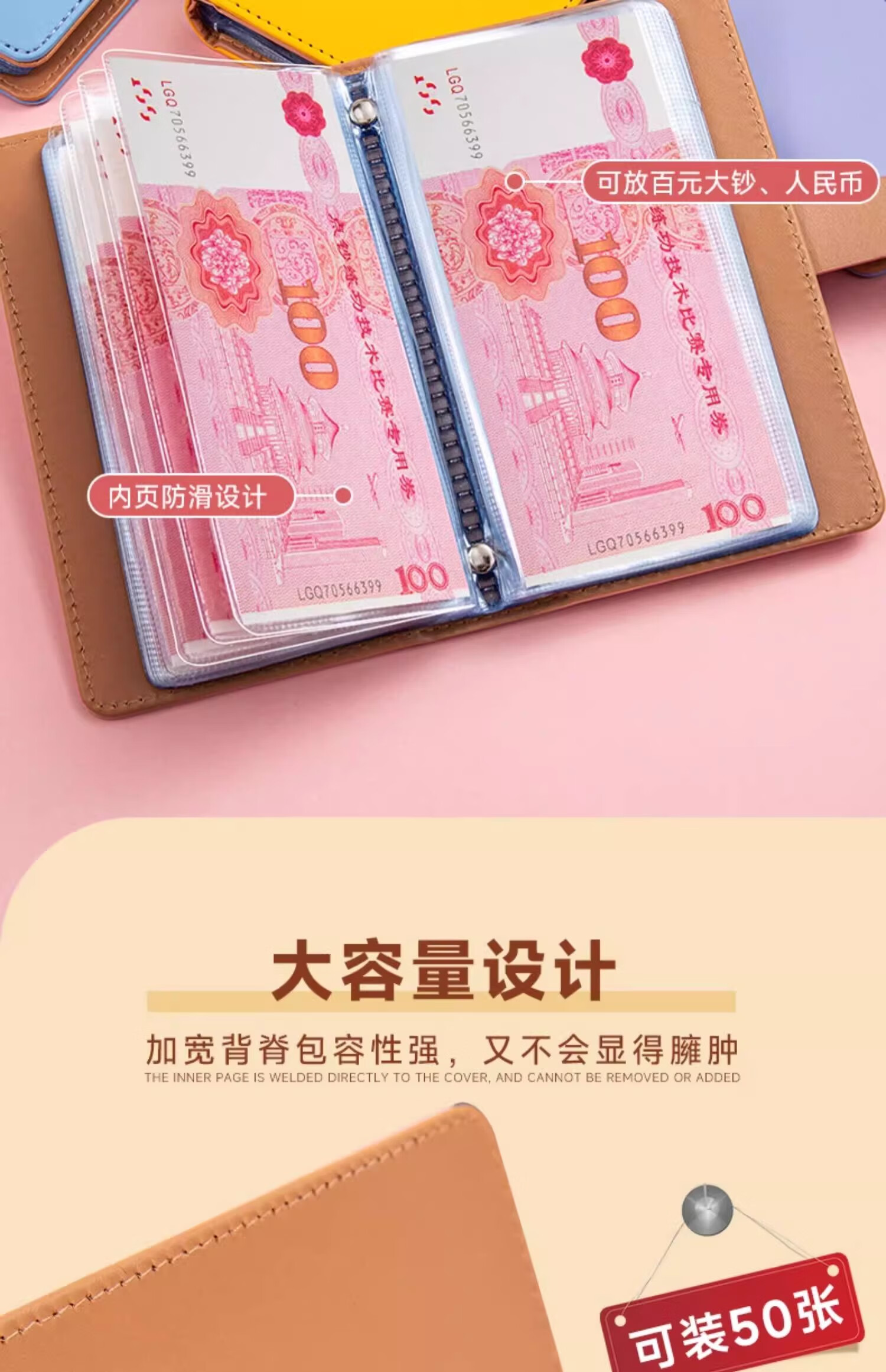 Jiapinyou cash wallet only holds cash storage bag, large capacity collection book, money clip storage bag, children's wallet, password lock - Starry Sky Blue
