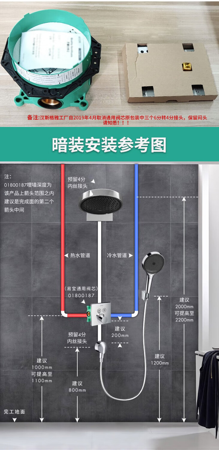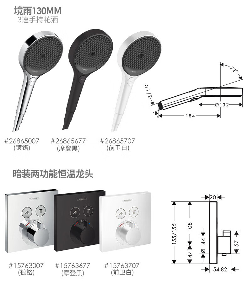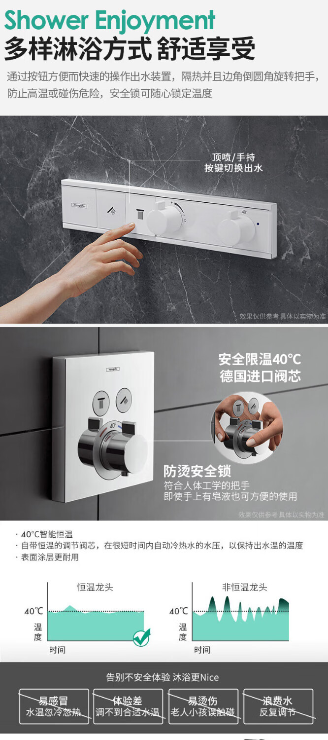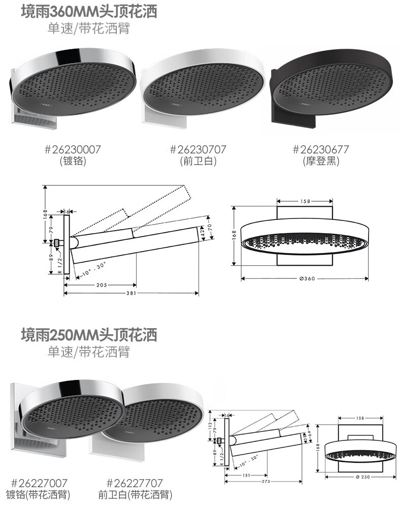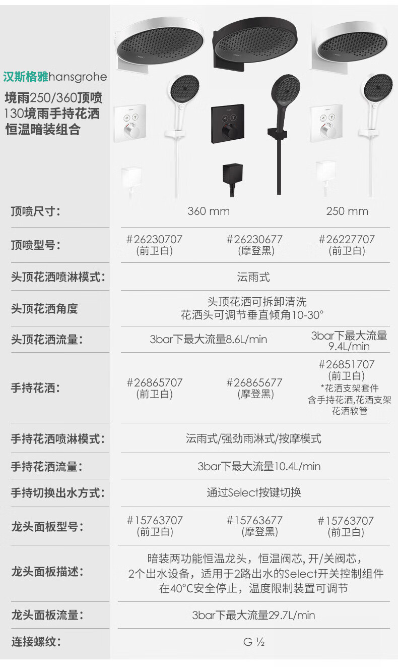 Hansgrohe Jingyu 360 in-wall double star rain shower head constant temperature hand shower combination concealed shower set 250 chrome-plated Jingyu concealed 26227007