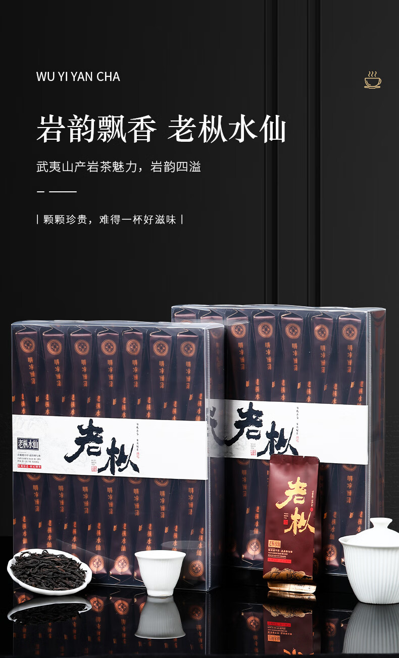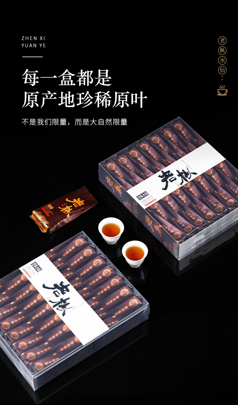 Qiu Boyuan Wuyishan Laocong Narcissus Authentic Rock Tea Zhengyan Oolong Tea Strong Flavor Gift Box New Tea 500g 500g (2 boxes of 60 bubbles)