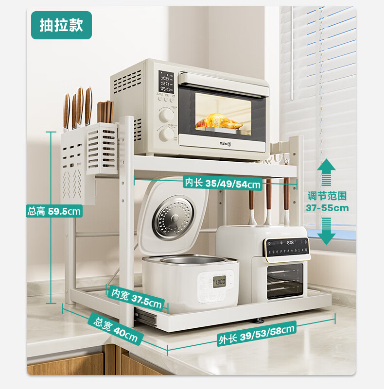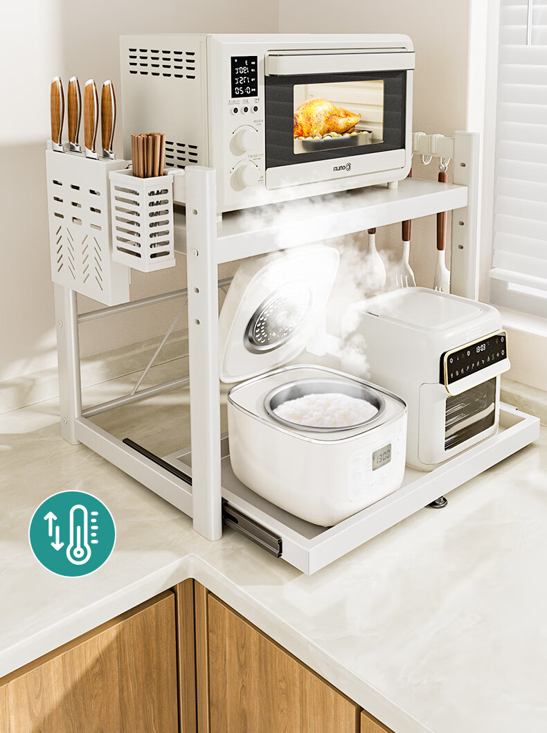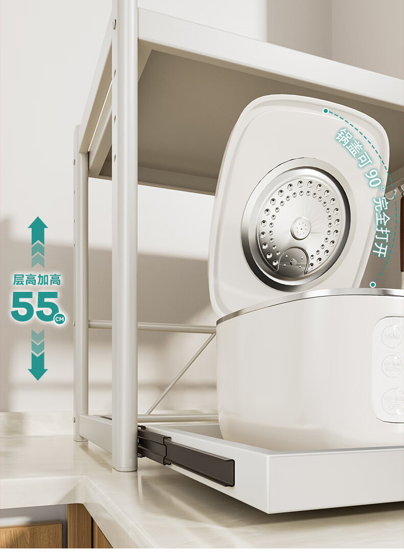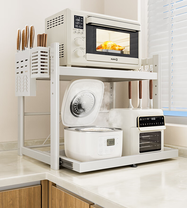Four Seasons Muge Kitchen Utensils Microwave Oven Storage Rack Countertop Rice Cooker Pot Storage Rack Pull-out Oven Rack Air Fryer Rack Milk White-Pull-out Style 39 Long Layer Height Adjustable