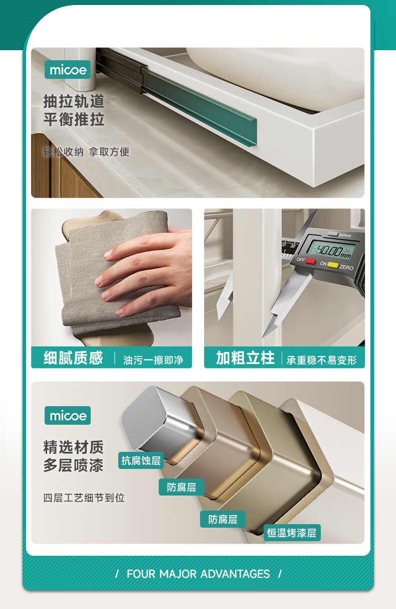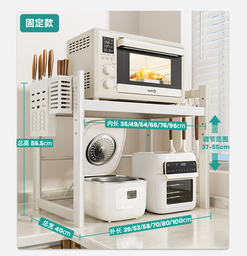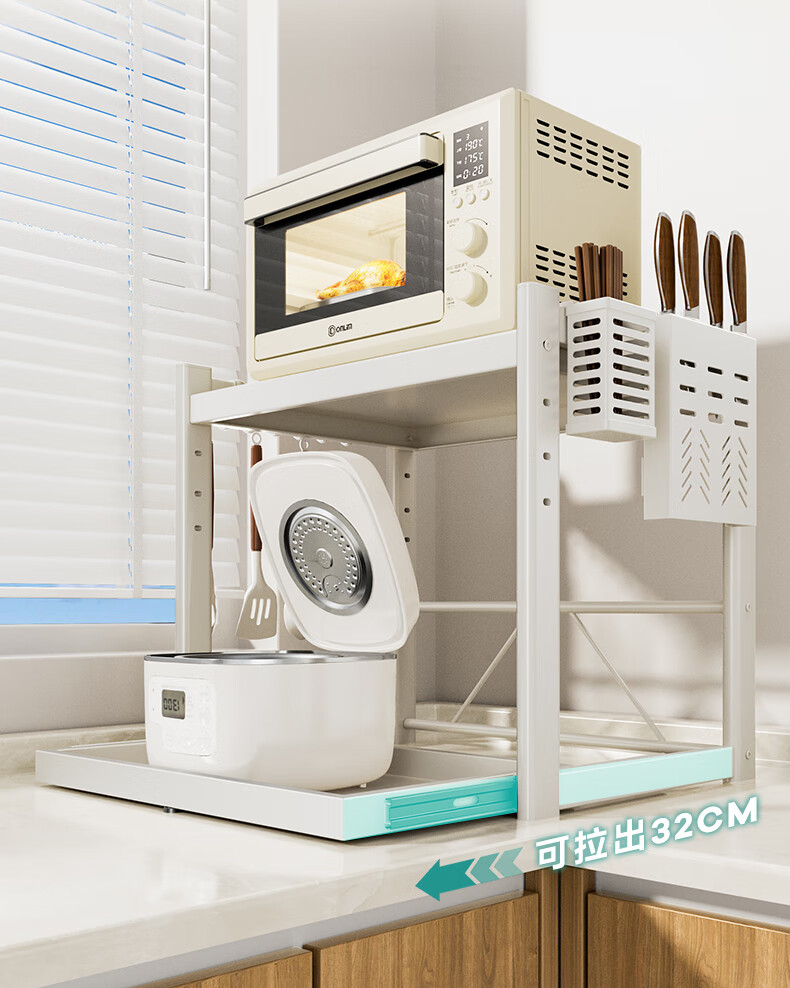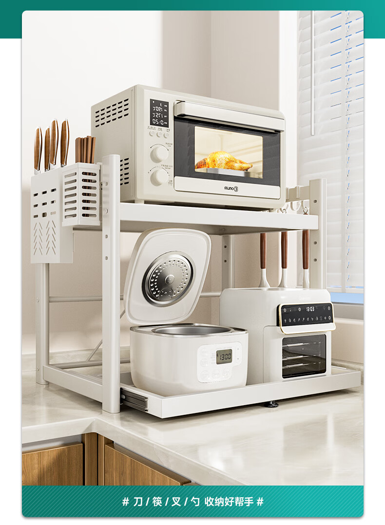 Four Seasons Muge Kitchen Utensils Microwave Oven Storage Rack Countertop Rice Cooker Pot Storage Rack Pull-out Oven Rack Air Fryer Rack Milk White-Pull-out Style 39 Long Layer Height Adjustable