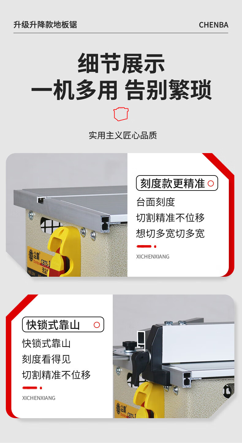 Chenba dust-free saw new 150F lift table saw solid wood floor whole house customized electric saw wardrobe installation woodworking cutting machine new dust-free table saw (150F lift version) standard