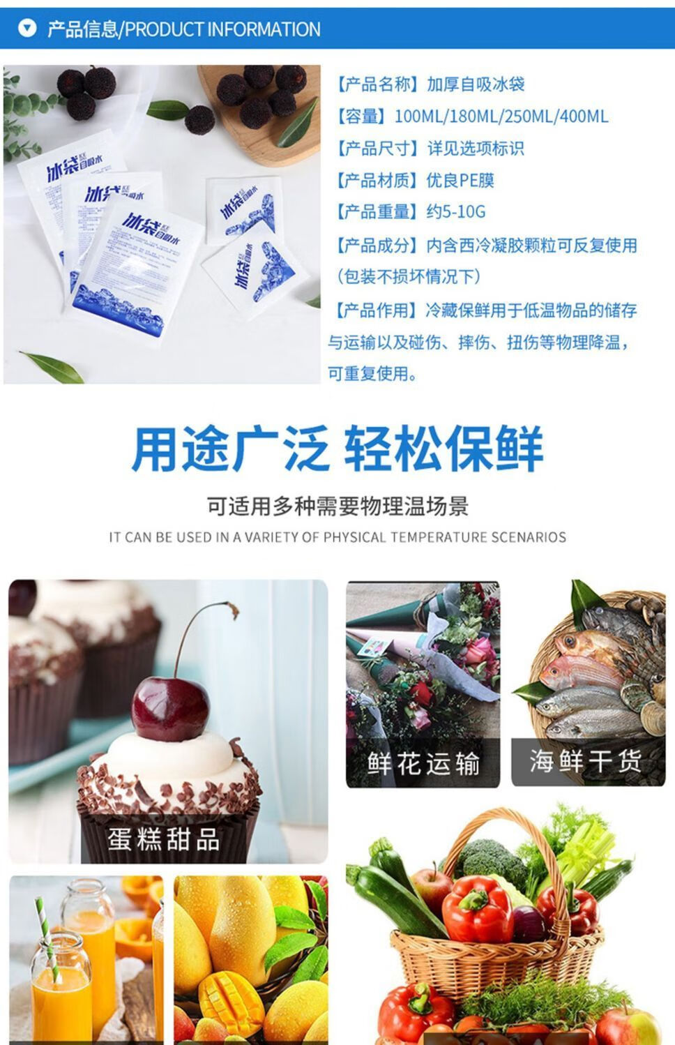 Ghost Claw water-free self-absorbing water ice bag refrigeration bag reusable food-grade express ice bag refrigerated seafood fresh-keeping ice bag newly upgraded self-absorbing thickened 250ML 1000 pieces