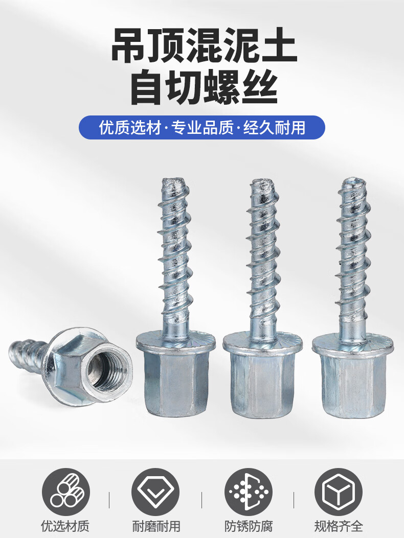 Jinggong (JINGGONG) new type of ceiling concrete self-cutting screw without main light ceiling artifact ceiling anchor screw rod connection and fixation 6*35 M8 screw rod special (100 pieces)