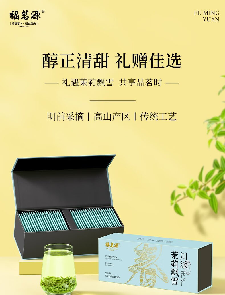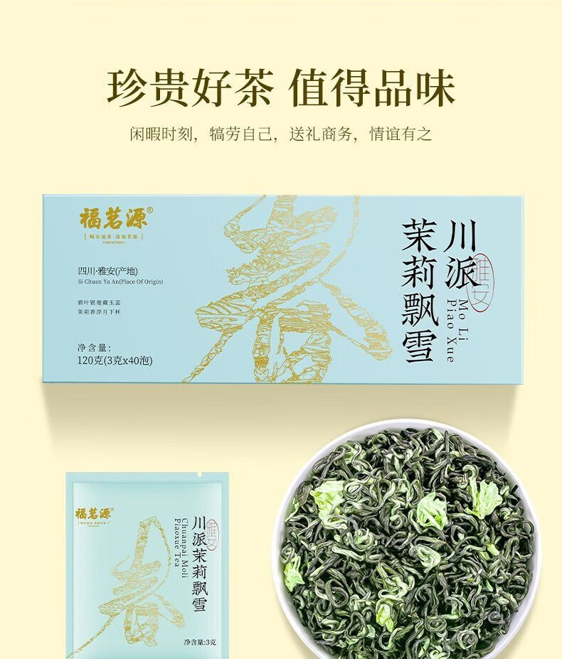 Fumingyuan Jasmine Tea Sichuan Jasmine Piaoxue Special New Tea Sichuan Flower Tea Gift Box Sichuan Jasmine Piaoxue 2 boxes total 240g