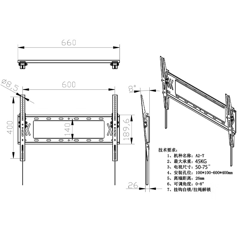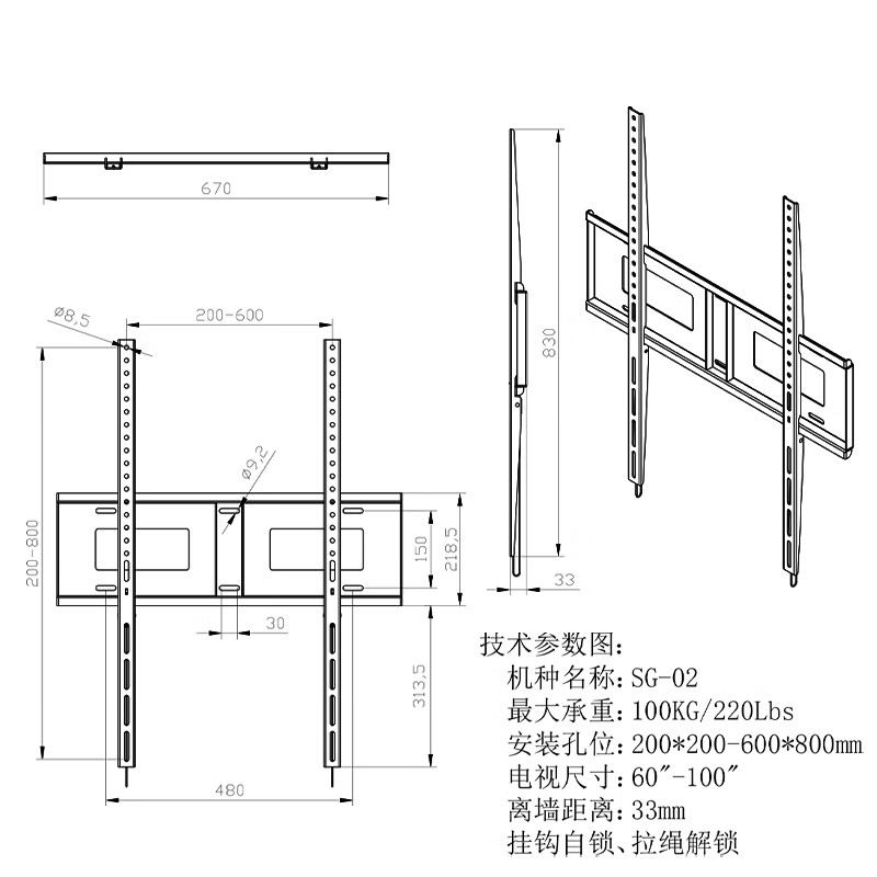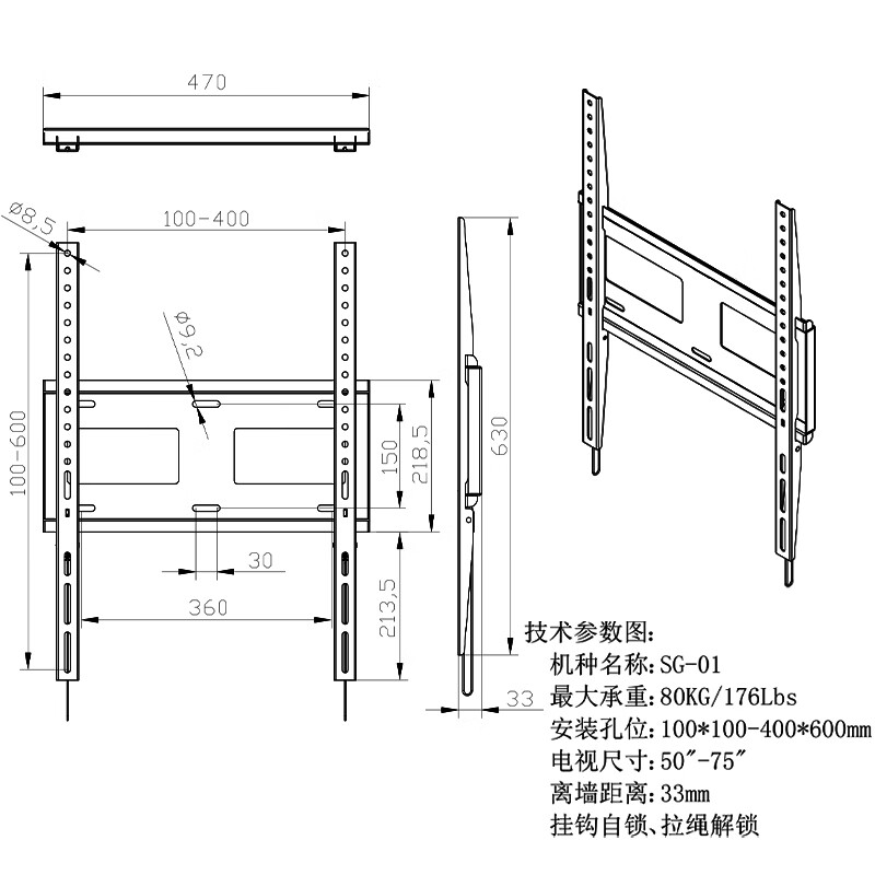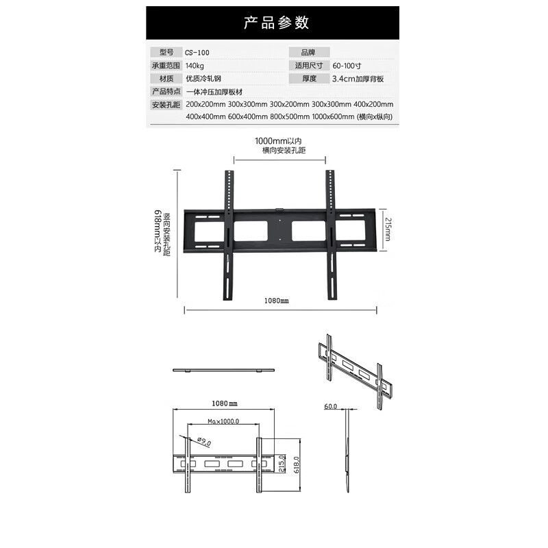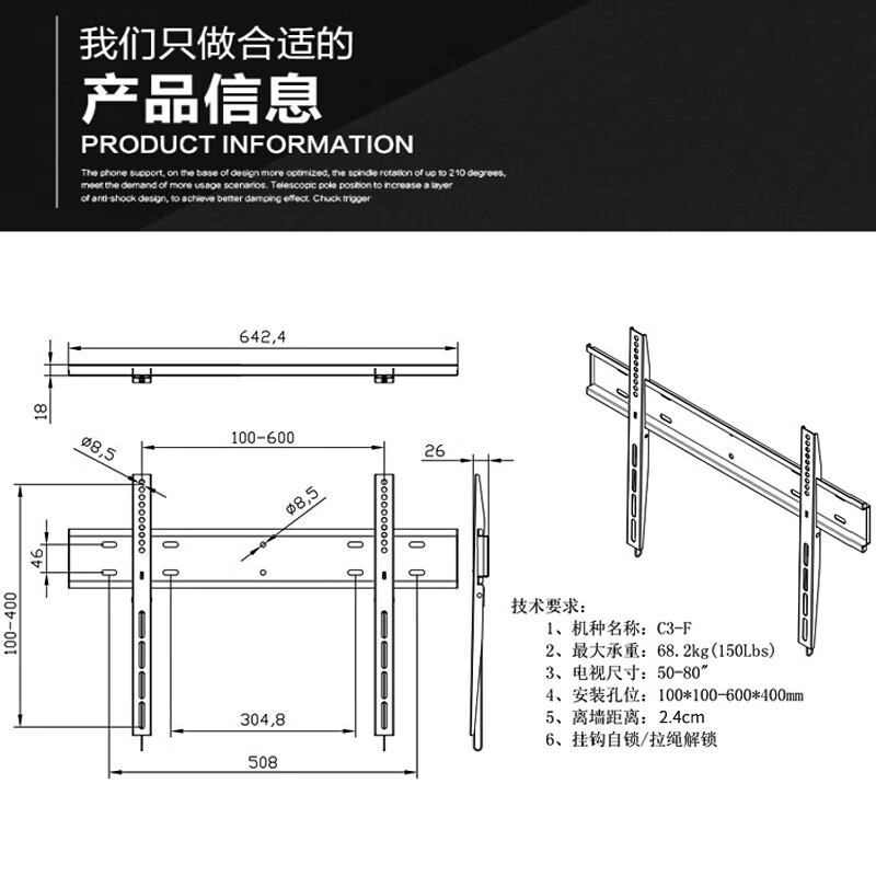 BIOOM MOUNT blooming TV rack 32-100 inches TV wall-mounted bracket large load-bearing universal TV stand first-class cold-rolled steel thickening reinforced black see note specifications purchase D2 suitable for 32-65 inches