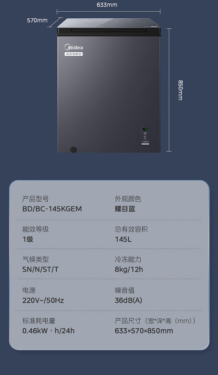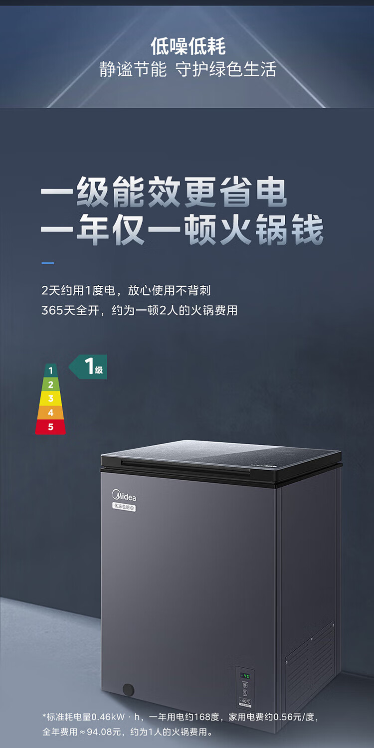 Midea Deep Cold-40 Freezer Electronic Temperature Control Seafood Freezer Freezer Ultra-low Temperature Level One Energy-Saving Cargo Machine BD/BC-145KGEM