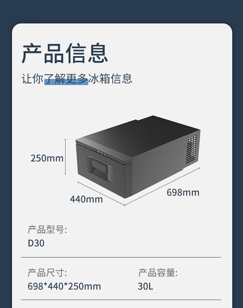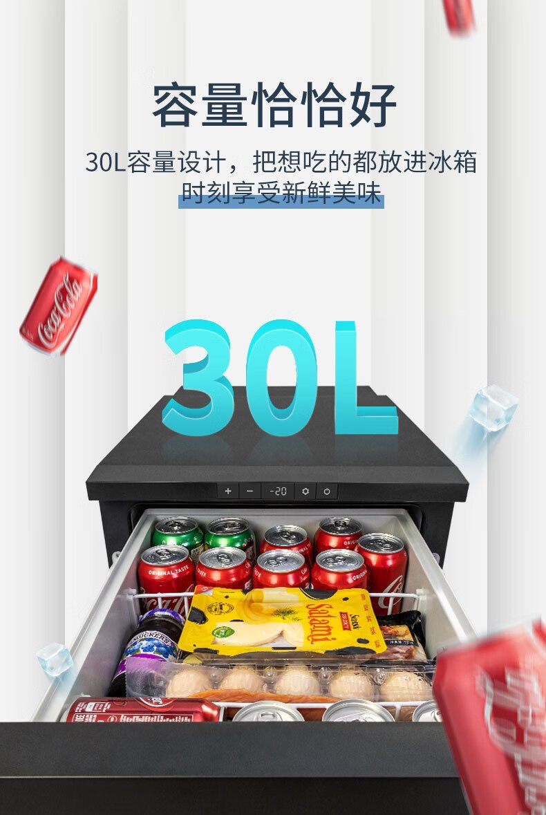 Ice Tiger car refrigerator compressor refrigeration embedded drawer 12v24v refrigerated RV truck embedded refrigerator D30 car drawer type + APP rear compressor 23 liters