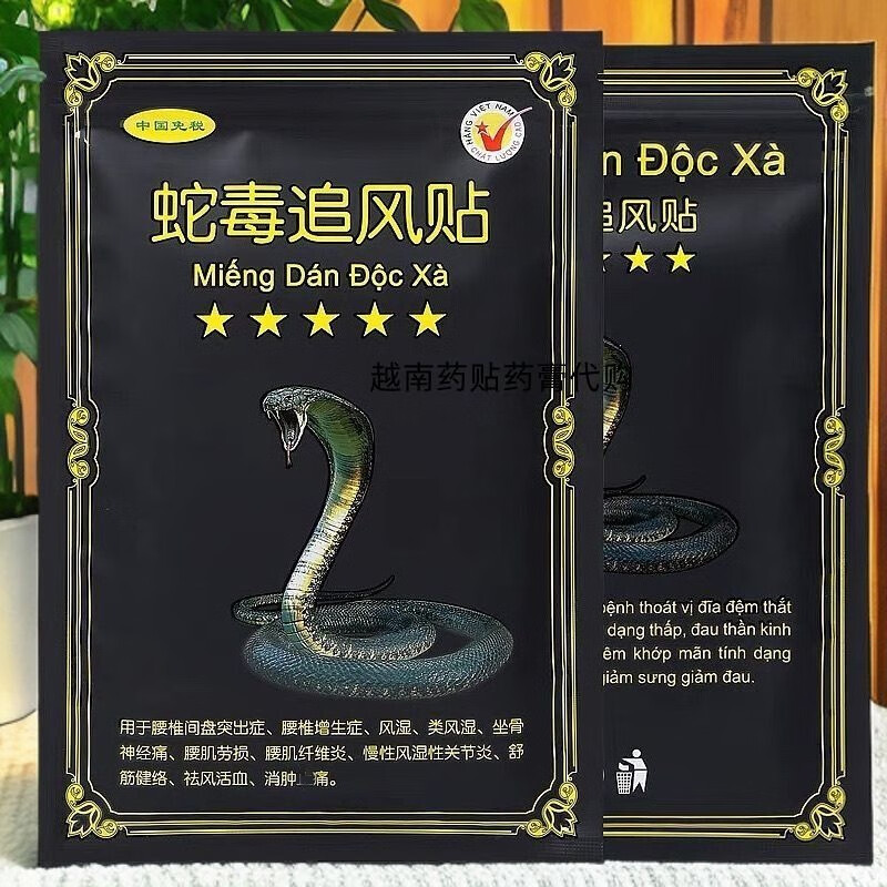 Vietnam original imported plaster patch, snake venom chasing wind bone-penetrating patch, relieves muscle pain, wet joint pain, lumbar intervertebral shoulder, black 10 patches*2 pack (experience pack)