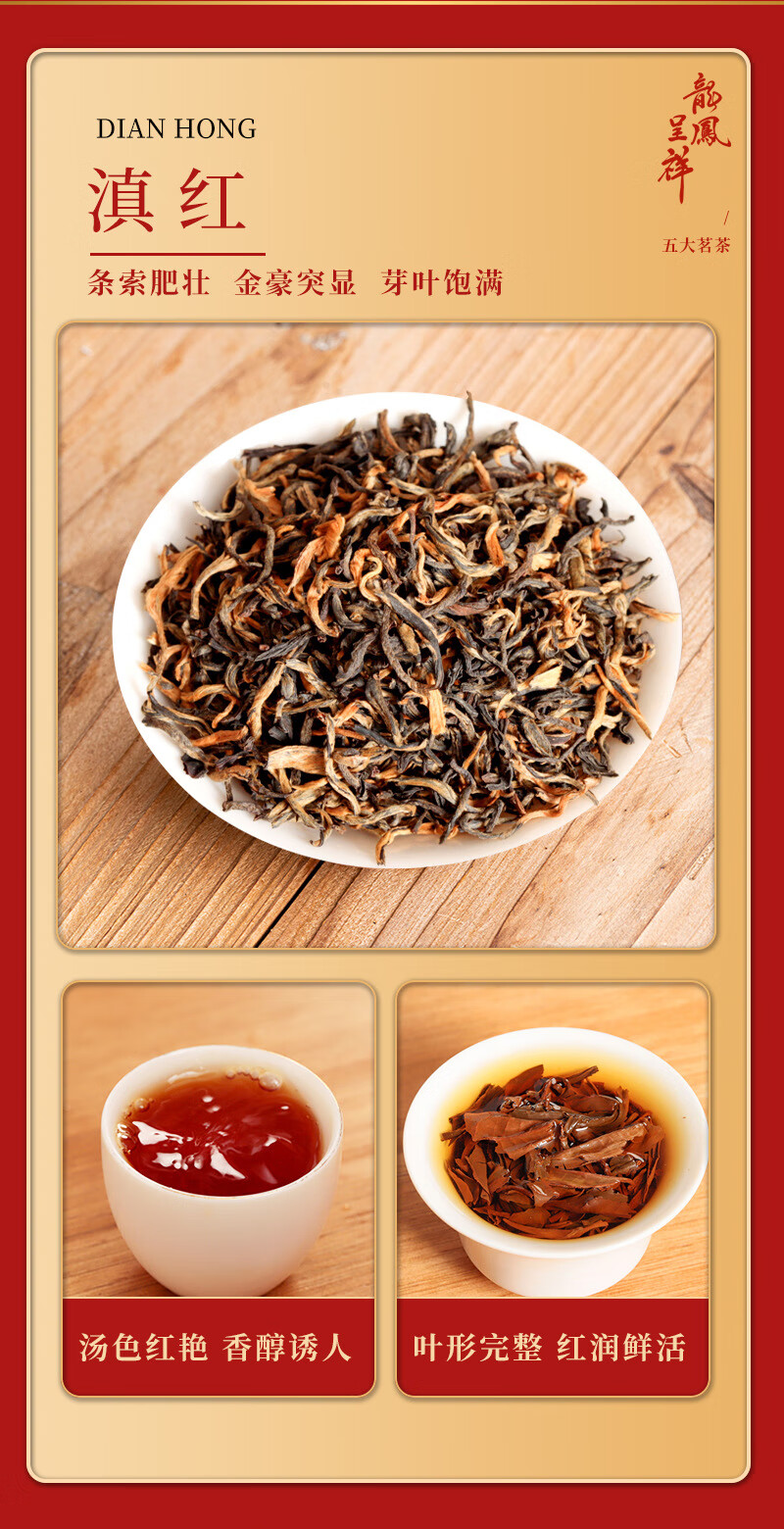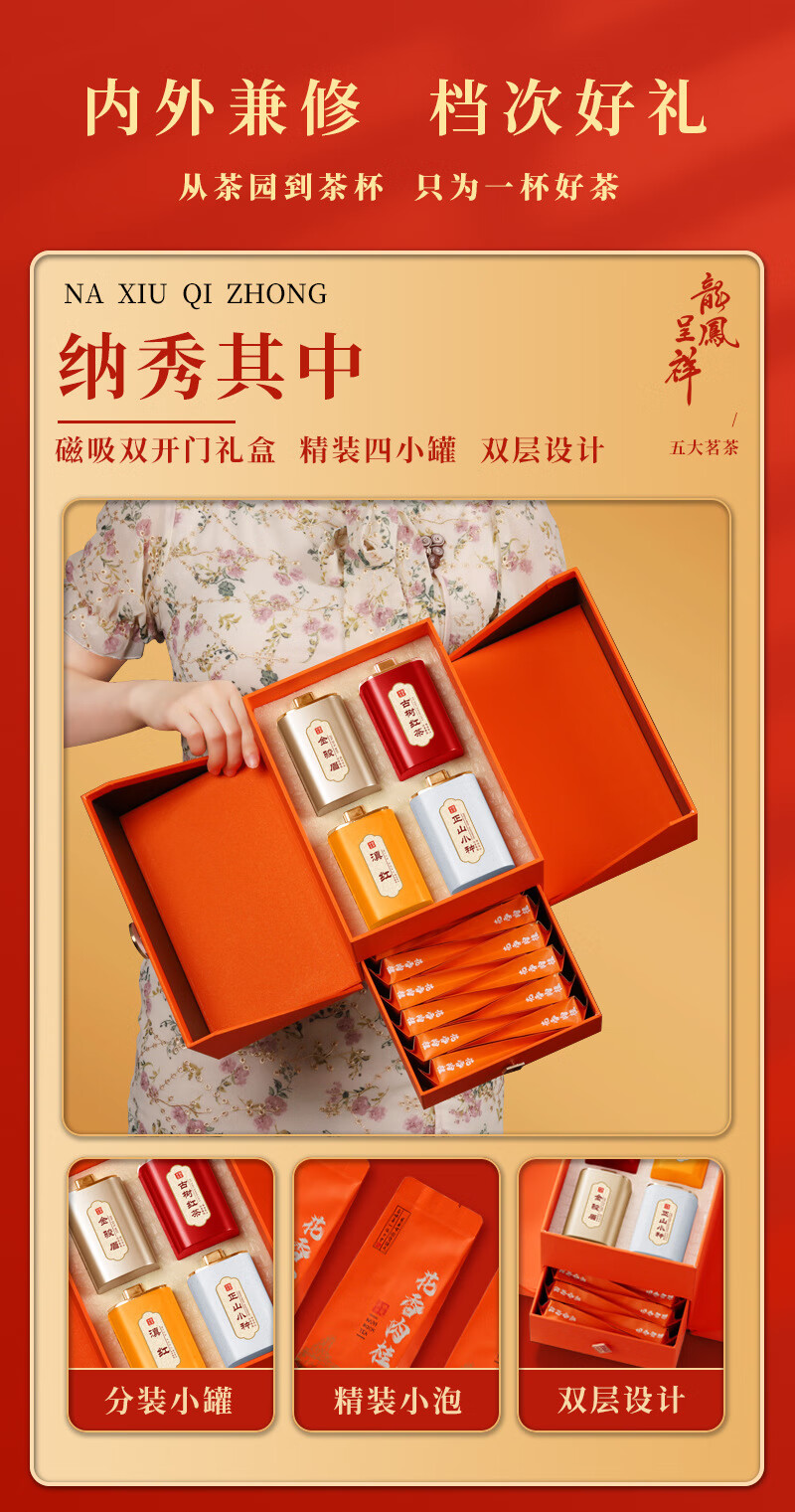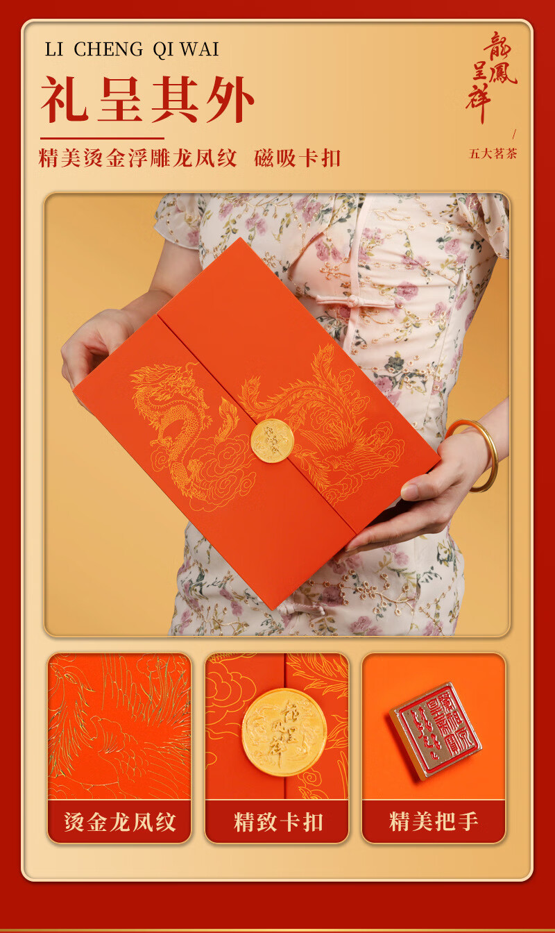 Boxin Dragon and Phoenix Chengxiang Five Famous Teas Yunnan Red Canned Black Tea Oolong Tea Double-layer Tea Gift Box for Chinese New Year Dragon and Phoenix Chengxiang Five Famous Teas