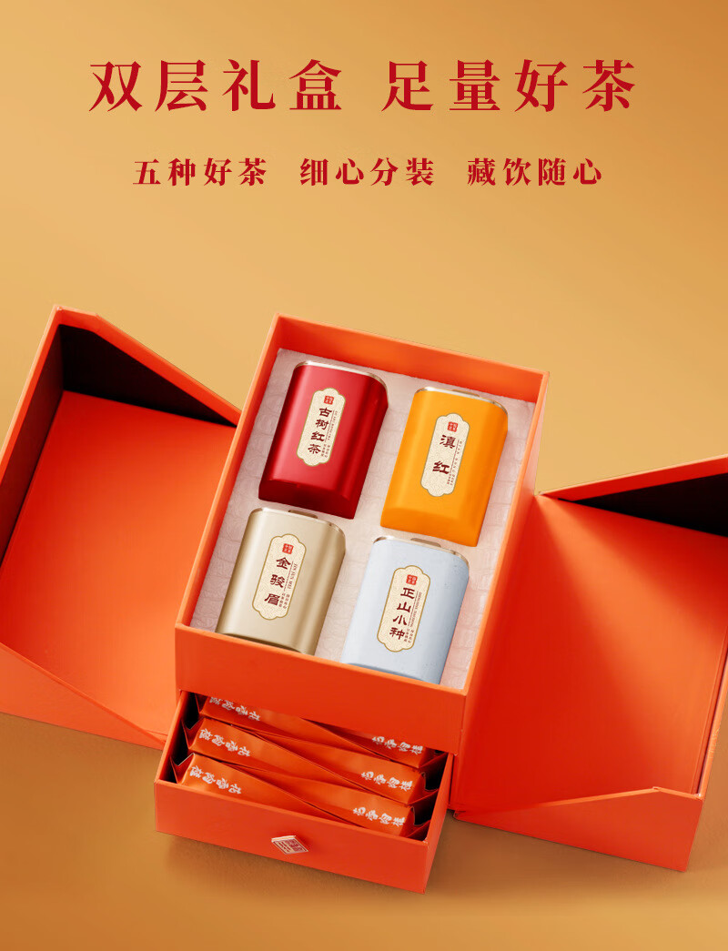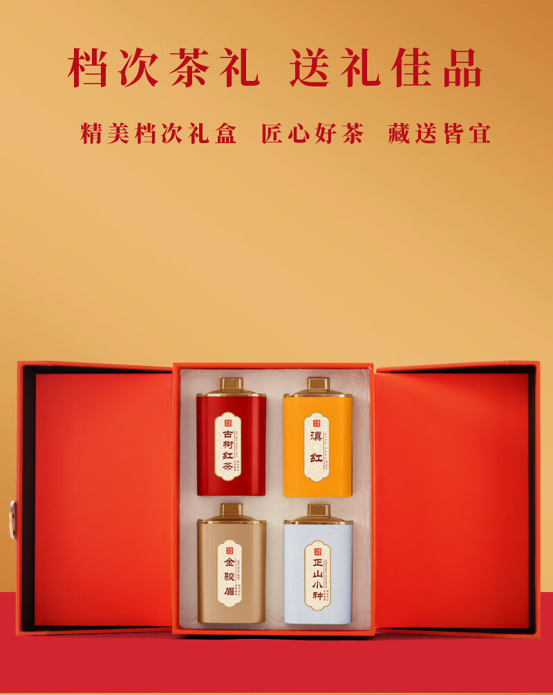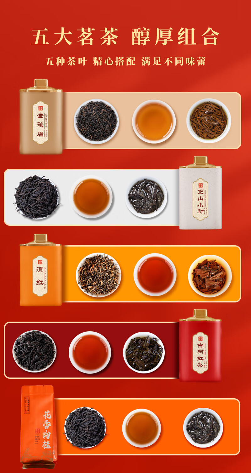 Boxin Dragon and Phoenix Chengxiang Five Famous Teas Yunnan Red Canned Black Tea Oolong Tea Double-layer Tea Gift Box for Chinese New Year Dragon and Phoenix Chengxiang Five Famous Teas