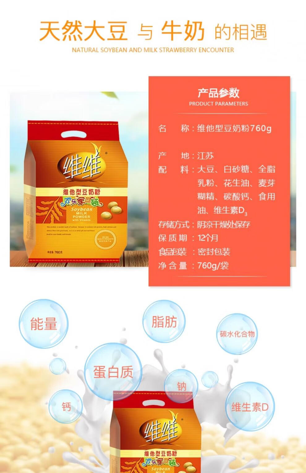 VV Soy Milk Powder Vita Type 760g Small Packet Nutritional Drink Breakfast Meal Replacement for Middle-aged and Elderly Students Soy Milk Powder 500g No Added Sucrose Soy Milk Powder*1 Bag