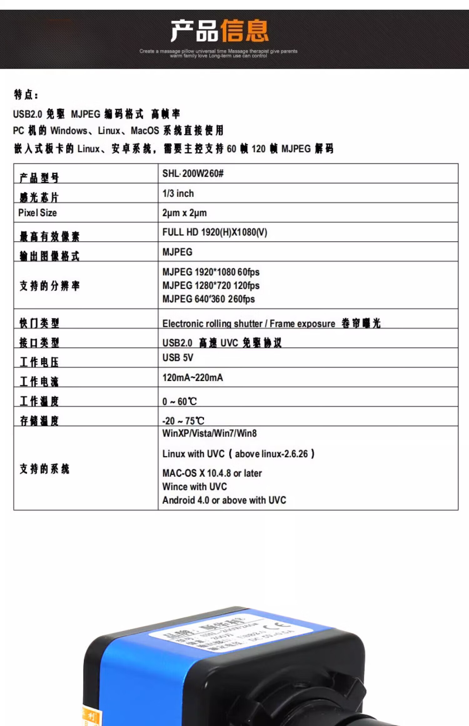 Yu Mengzhe HD 2 million pixel USB industrial camera high frame rate 260 frames dynamic shooting visual inspection camera
