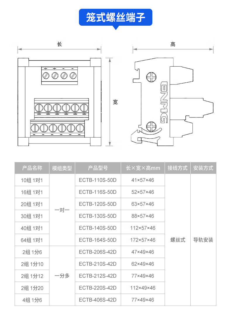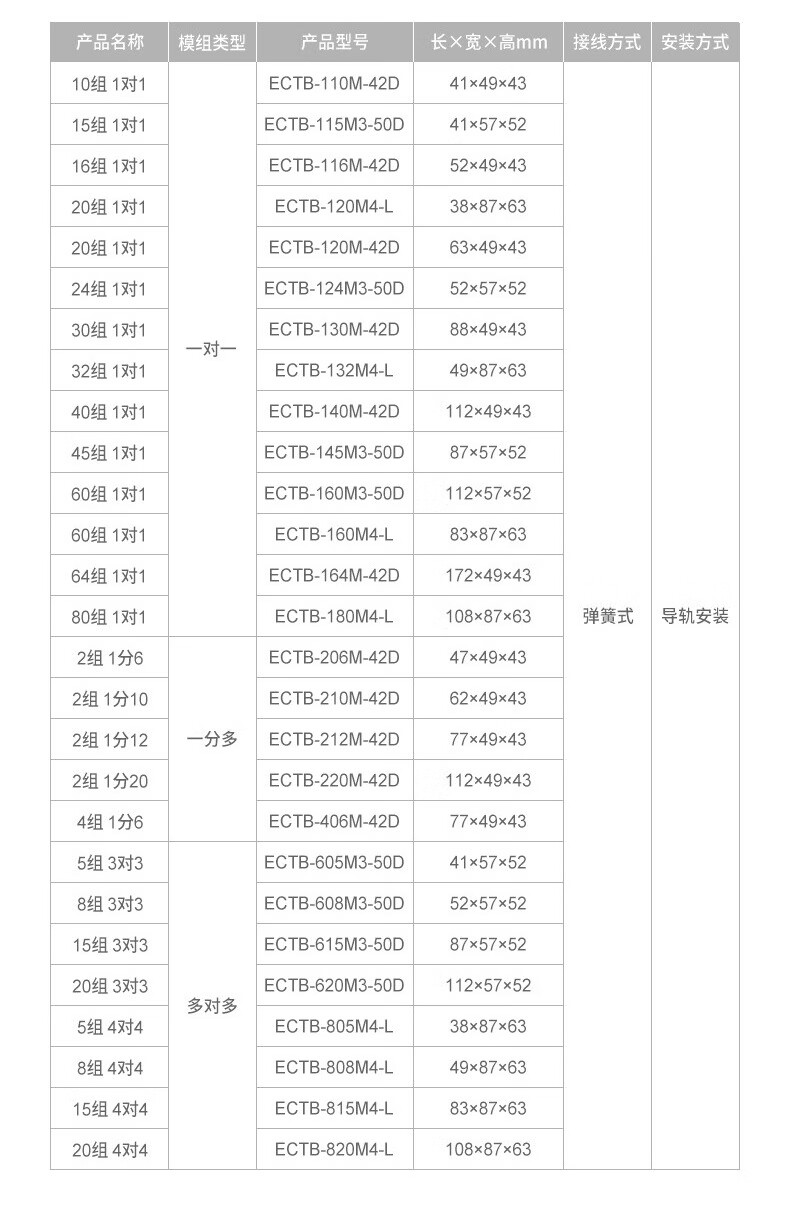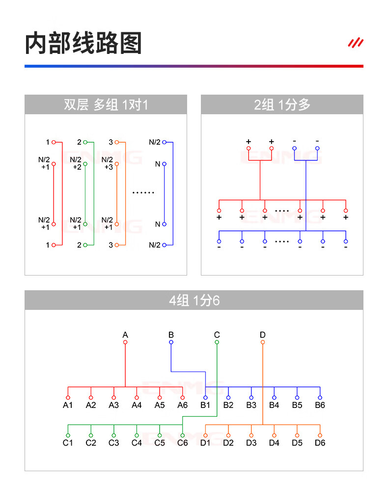 Enjue branch terminal block 10~64 groups 1 to 1 more than one minute Terminal block screw-free spring plug-in type 4 groups 1 minute 6 screw terminals