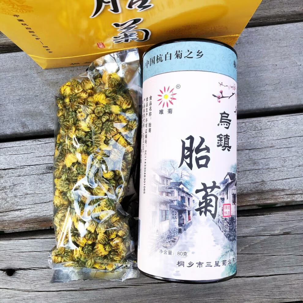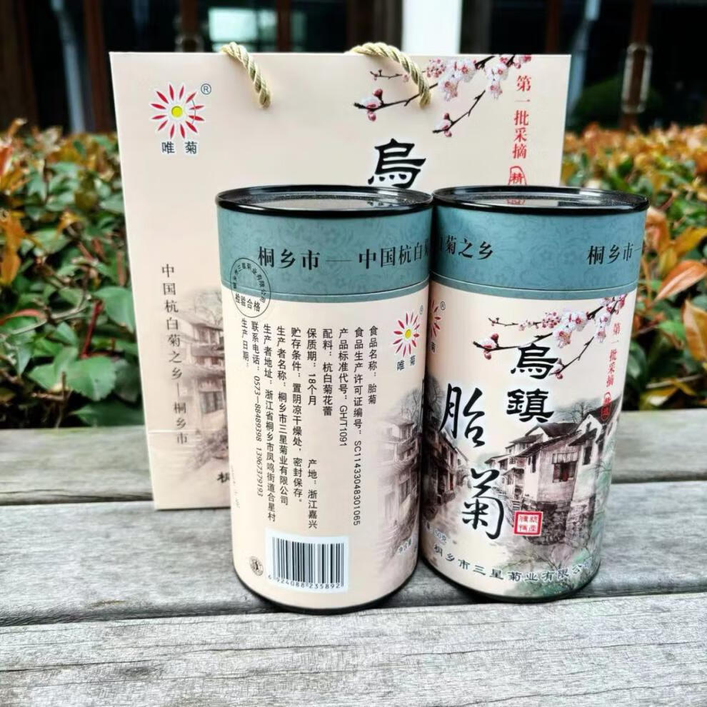 Wuzhen specialty fetal chrysanthemum 50g canned Tongxiang Hangzhou white chrysanthemum buds authentic fire Hangzhou flower tea souvenir 1 can 50g (full 2 cans with gift bag)