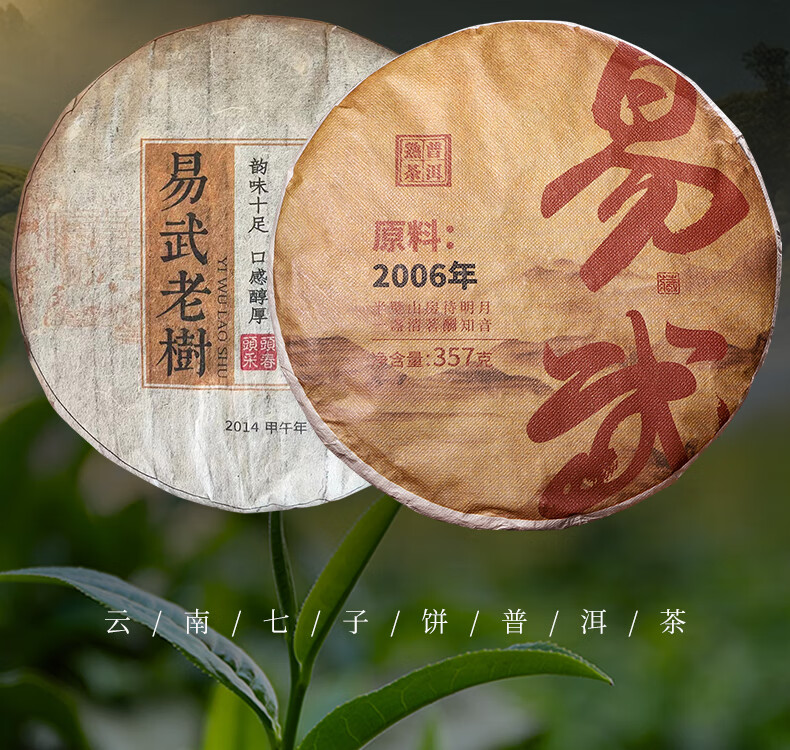 Fragrant food Yiwu Pu'er tea ripe tea Yunnan Qizi cake tea raw Pu'er tea cake specialty grade ancient tree tea self-drink ration tea 355g 2006 Yiwu old ripe tea