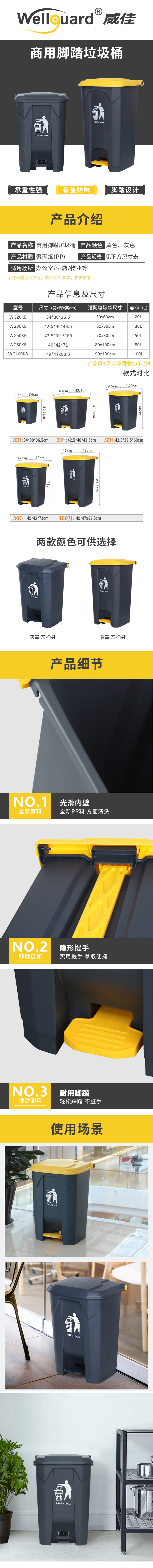 Weijia commercial trash can large foot pedal property kitchen hotel thickened outdoor trash can with lid gray 50L full gray bucket