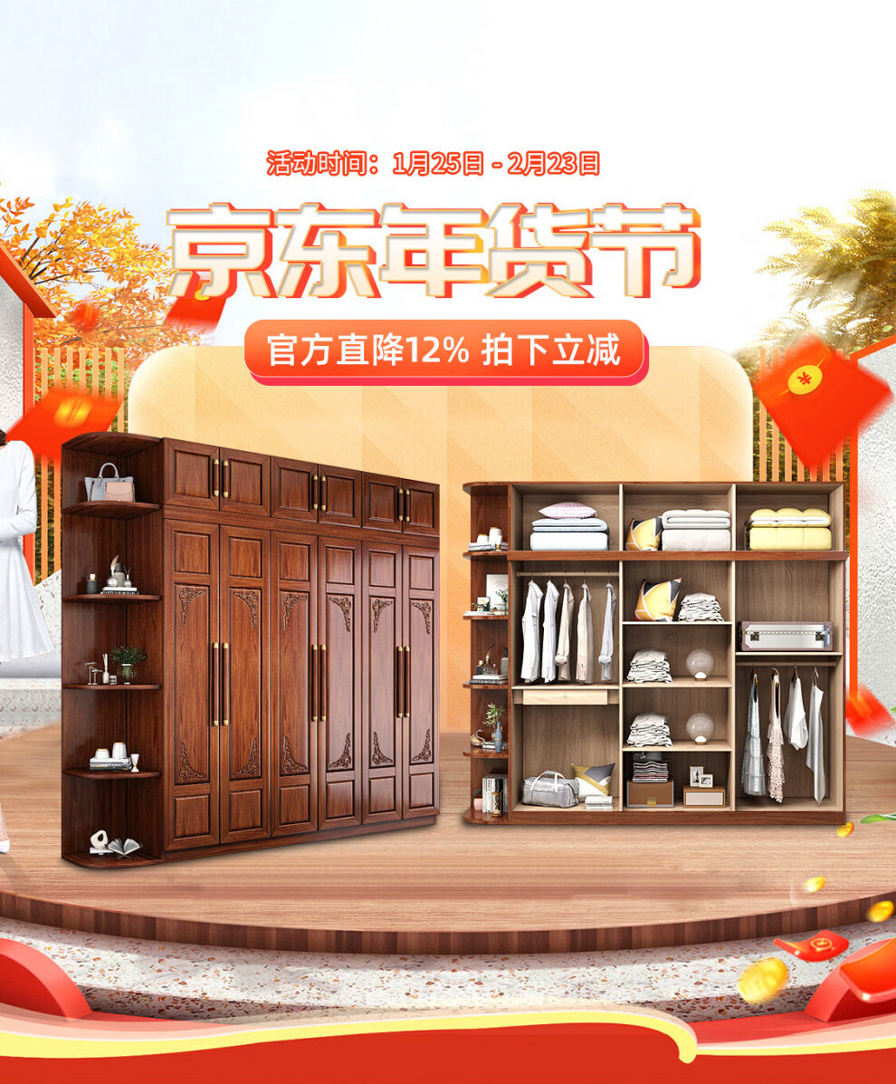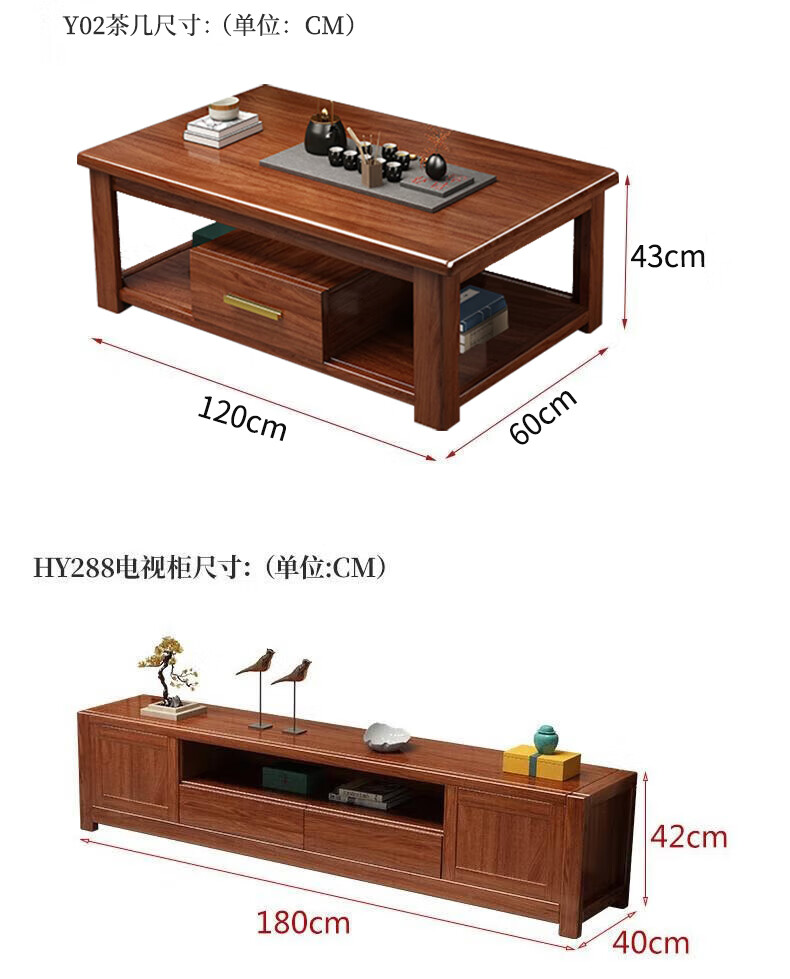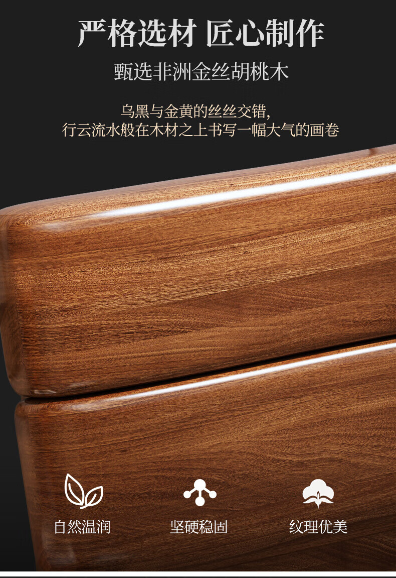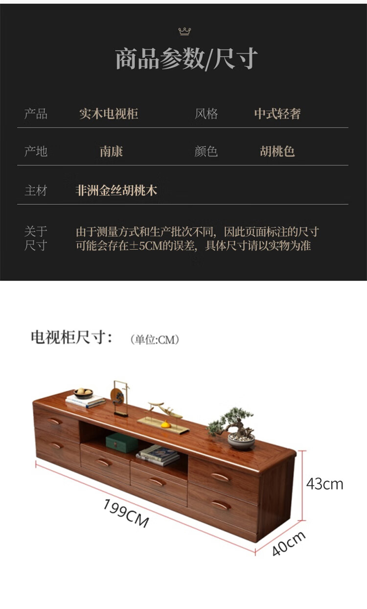Hengyun TV cabinet golden walnut solid wood TV coffee table combination cabinet floor cabinet simple living room Chinese style boutique furniture 2.0m six-drawer TV cabinet golden walnut color
