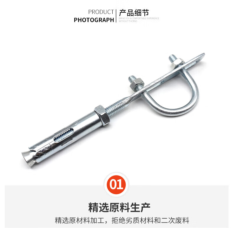 Yuqin expansion support rod U-shaped hoop pipe clamp fixed pipe clamp natural gas pipeline water pipe fixed bracket fishtail card U-shaped card expansion 8*150 card 4 points (punch 12)