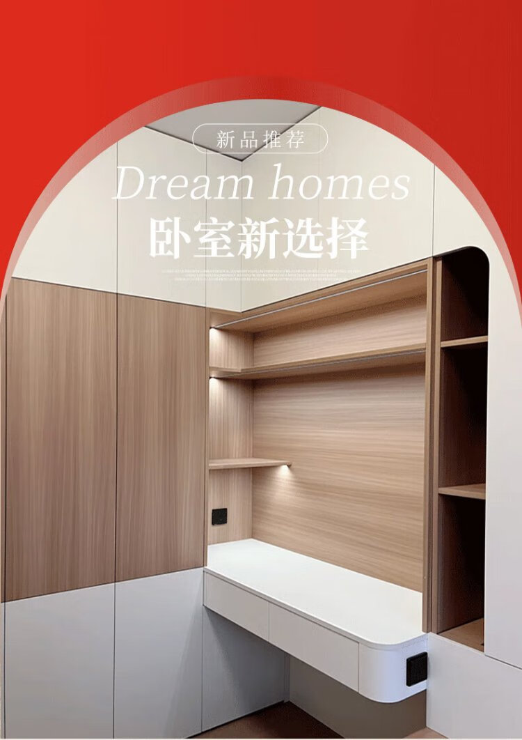 Extraordinary wood work inside and out Water-based Ketian ENF Huimin series Bedroom Italian simple wardrobe desk tatami multi-space cabinet customization Water-based Ketian bedroom furniture customization