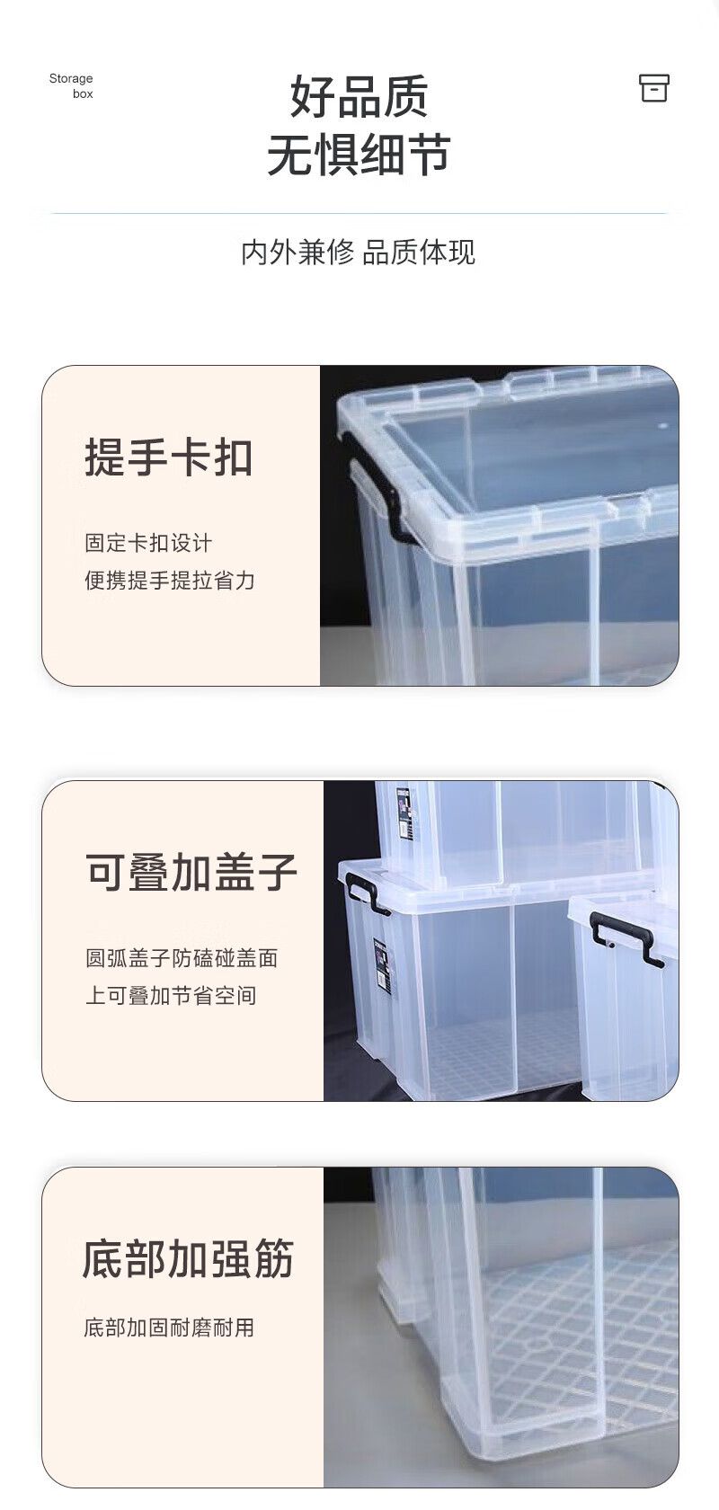 Transparent storage box plastic storage box storage box turnover box 70L 52.5*38*32.5cm