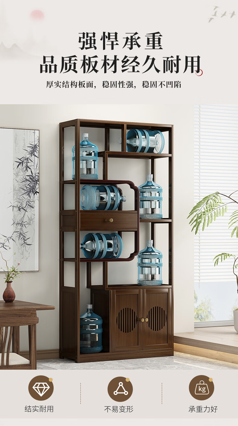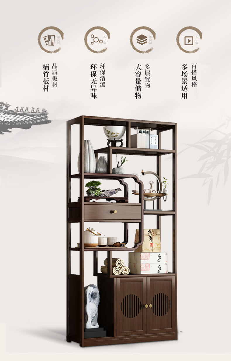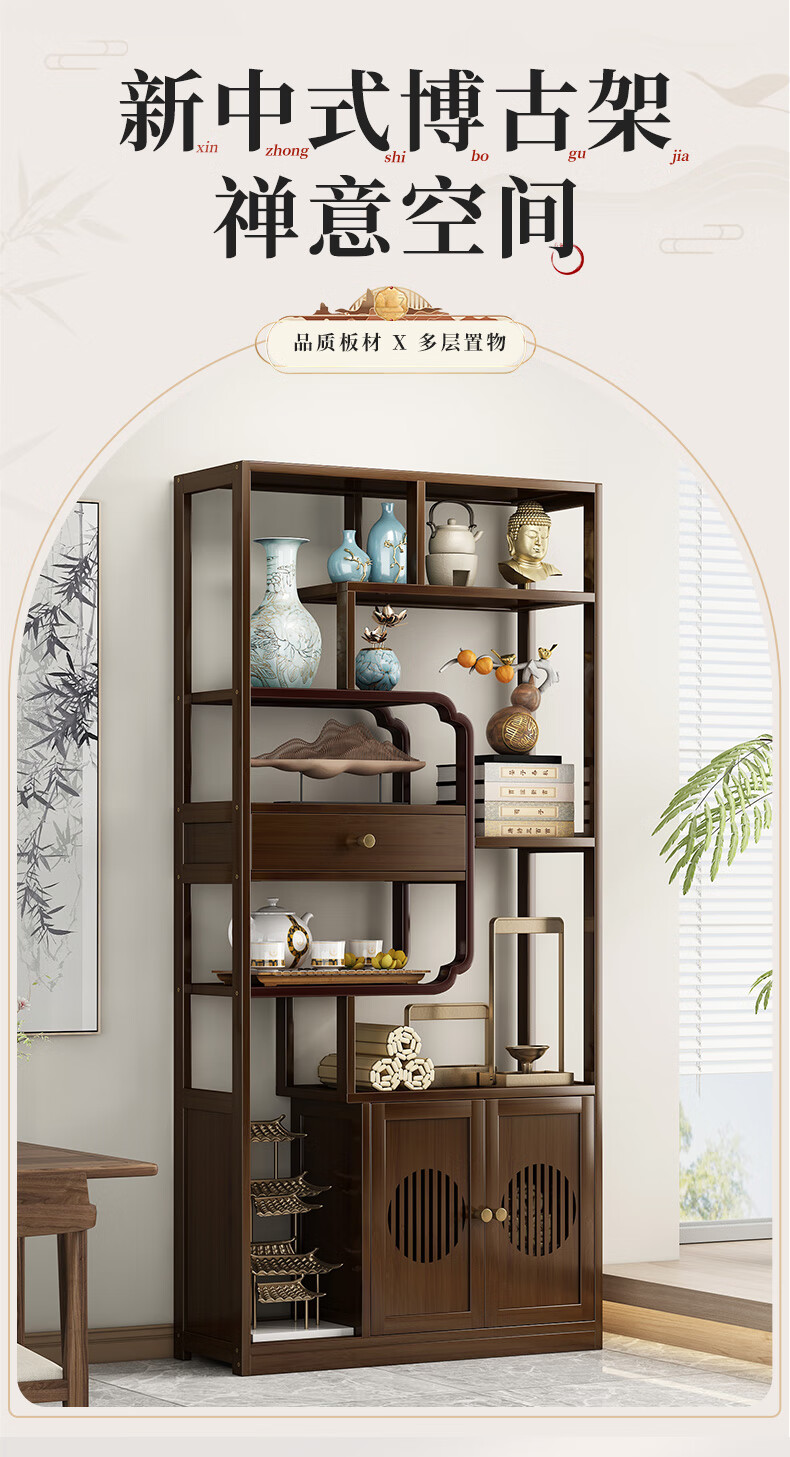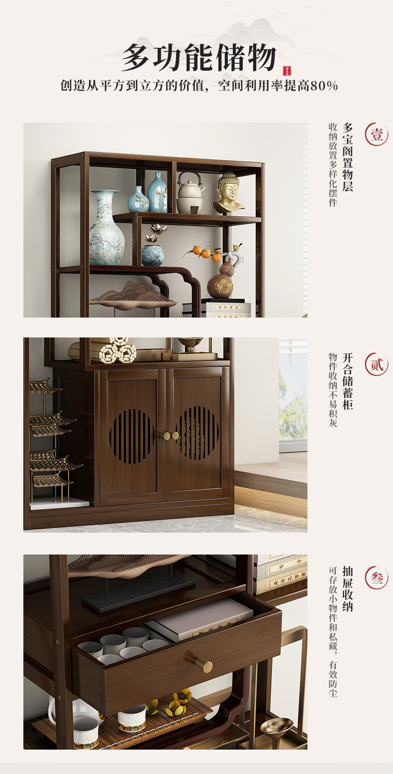 Sizhuge new Chinese style living room floor-standing ancient shelf Duobaoge tea tea room storage rack tea cabinet tea set display shelf combination style-3 piece set