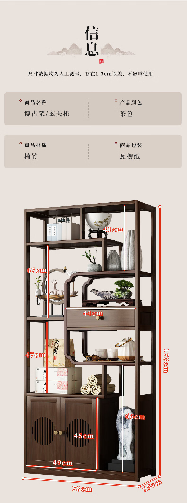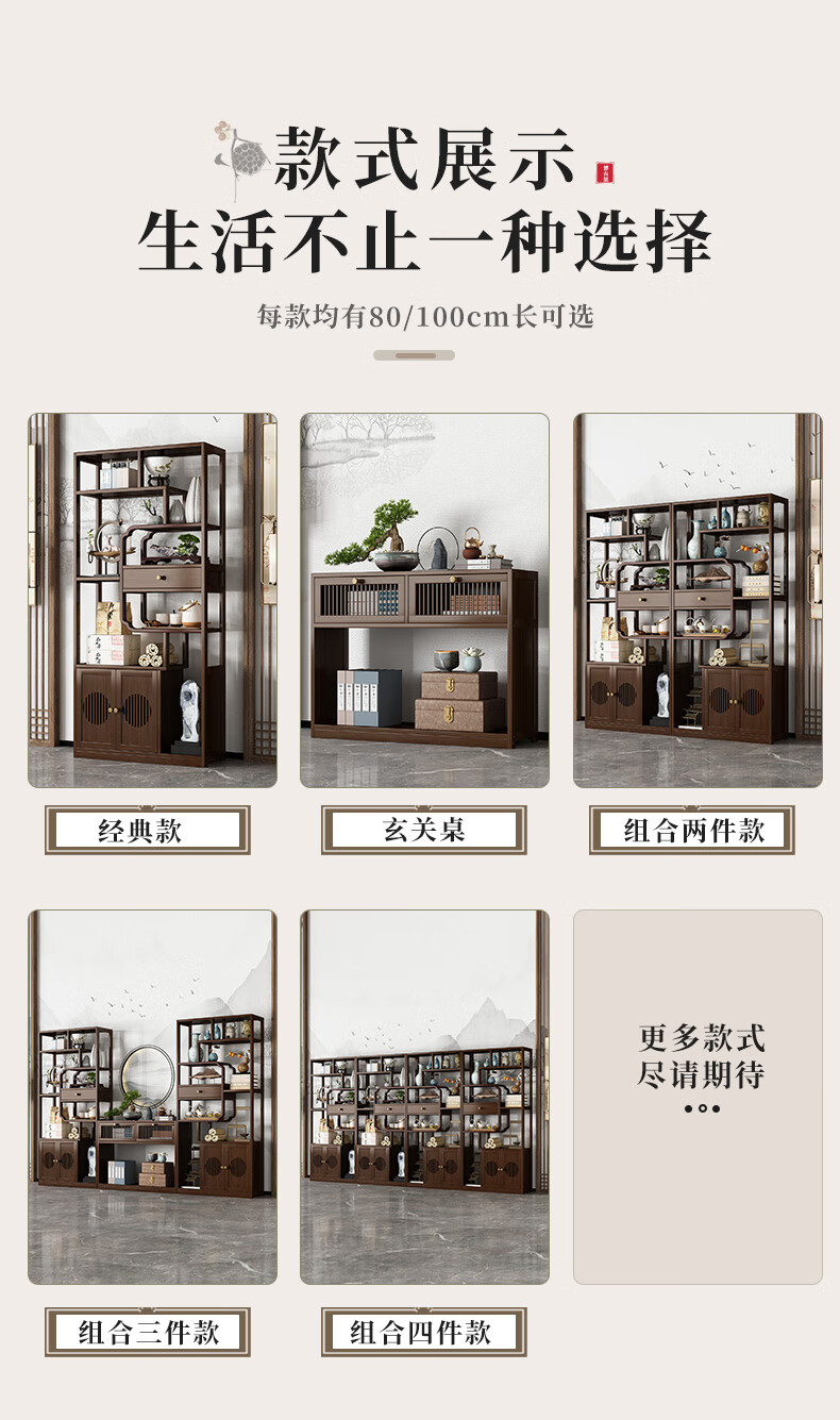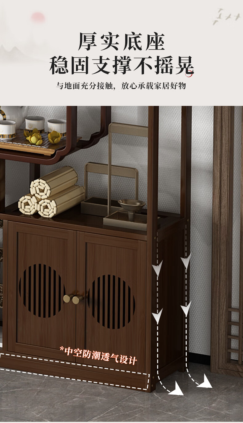 Sizhuge new Chinese style living room floor-standing ancient shelf Duobaoge tea tea room storage rack tea cabinet tea set display shelf combination style-3 piece set
