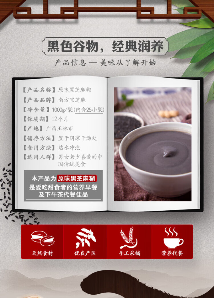 Southern black sesame Southern black sesame paste Hardcover 1000g/bag Family breakfast New and old packaging shipped randomly Original flavor Original black sesame paste 1kg