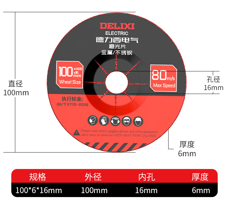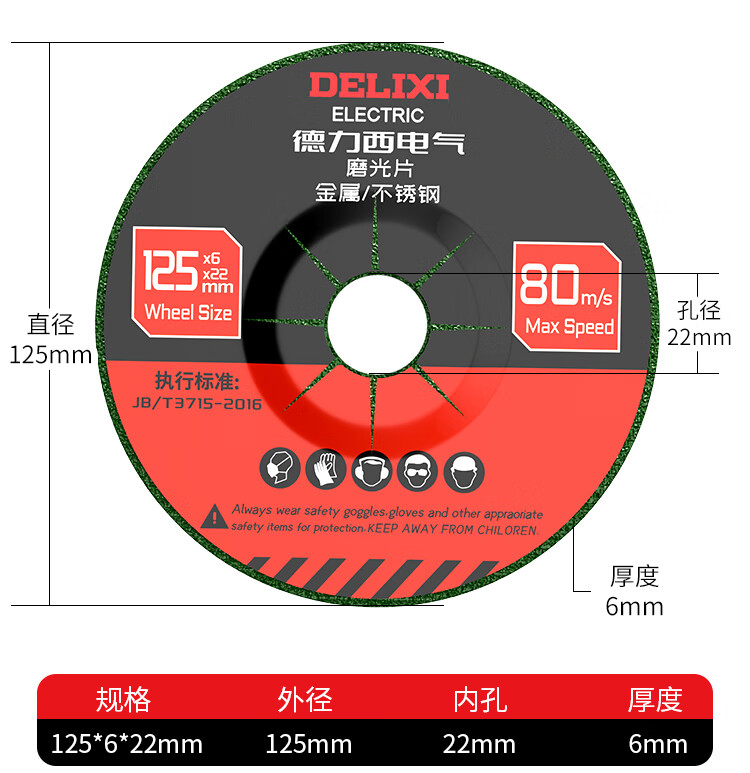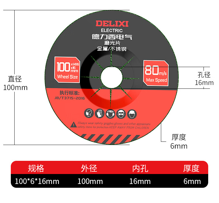 Delixi electrical grinding disc 100*6 polishing disc angle grinder thickened grinding wheel sheet metal special hand grinder polishing disc green 100*6*16mm 1 piece