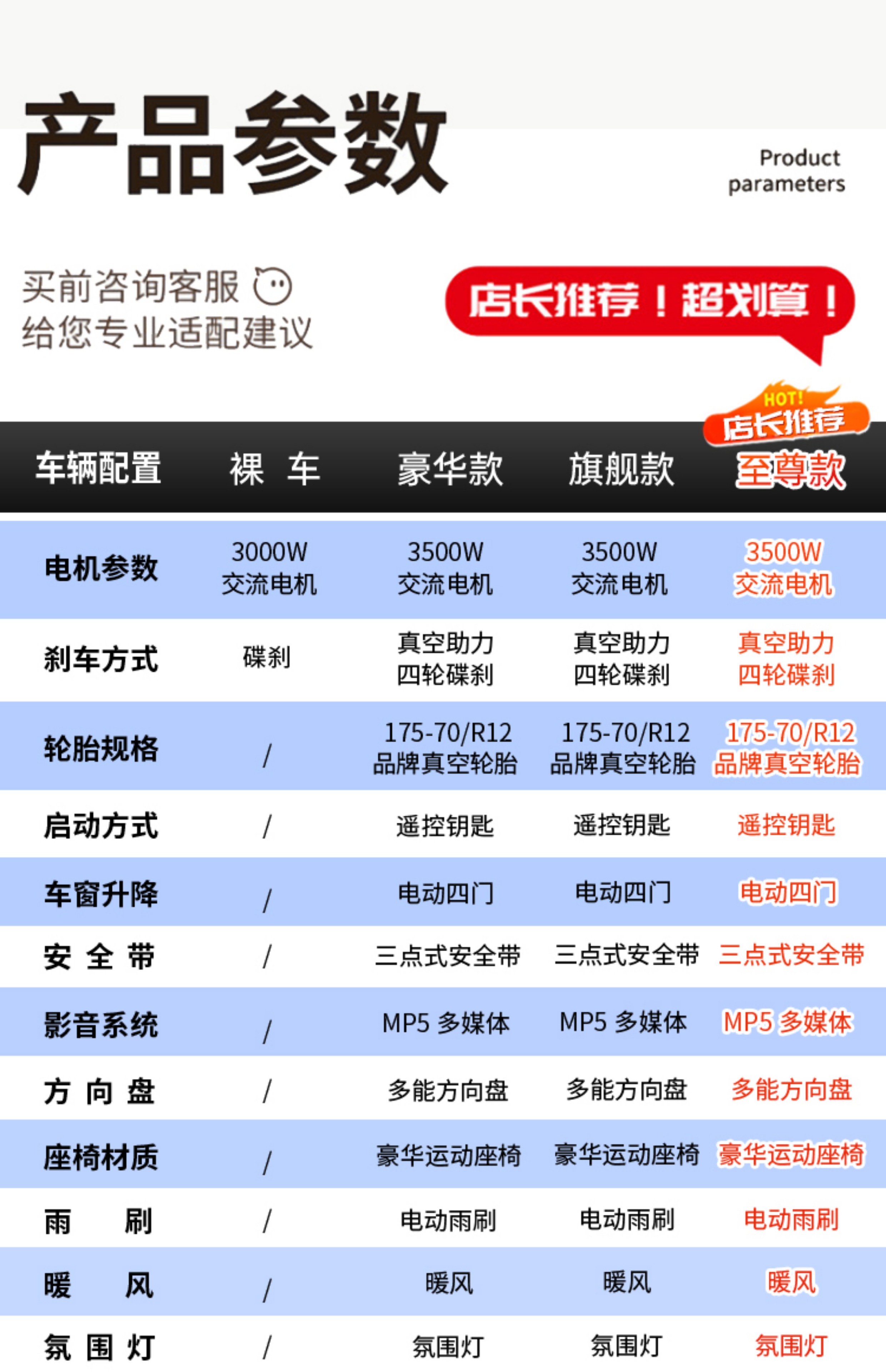 Kaybach four-wheel electric vehicle, new energy model, household ladies, small petrol-electric air conditioner, adult four-wheel mobility battery vehicle, supreme air-conditioned version 60V400 model with a range of 320 miles