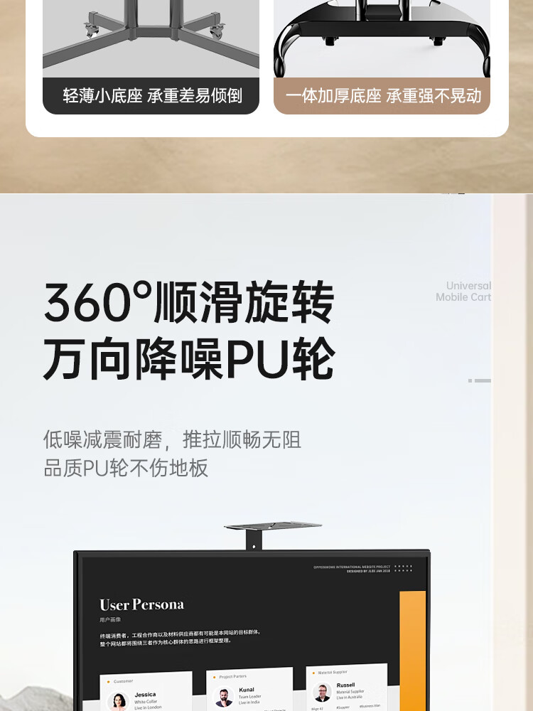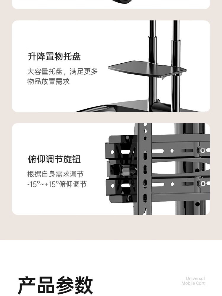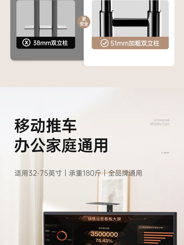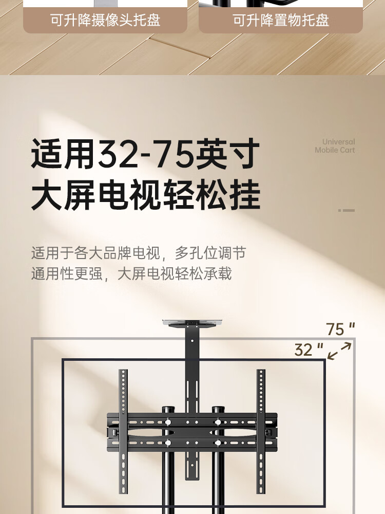 Suitable for Xiaomi Hisense TV stand movable all-in-one floor-standing monitor rack trolley with wheels all-in-one special edition 32-65 inches, freely adjustable, load-bearing about 120