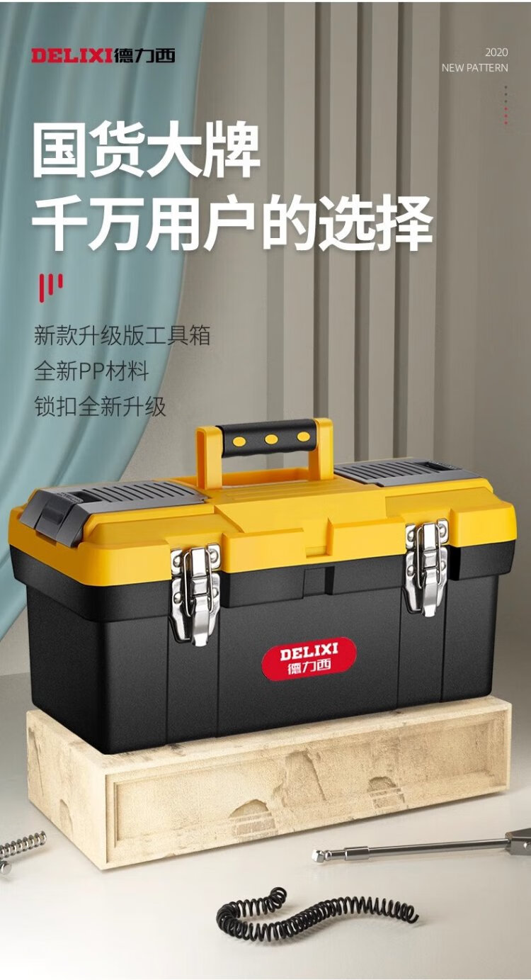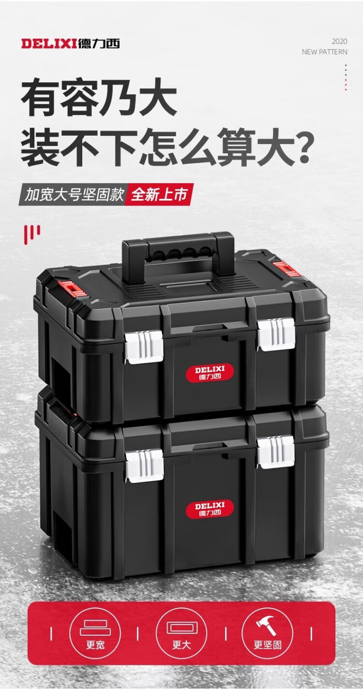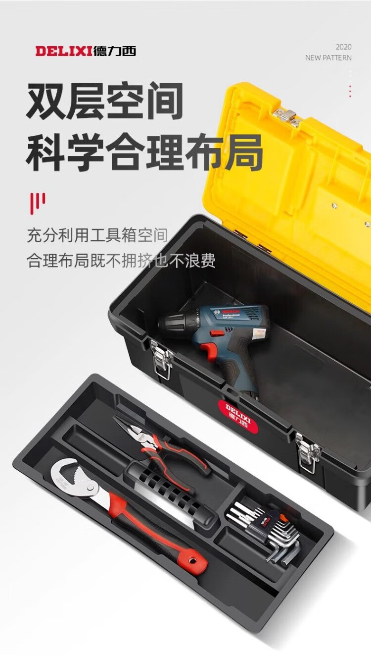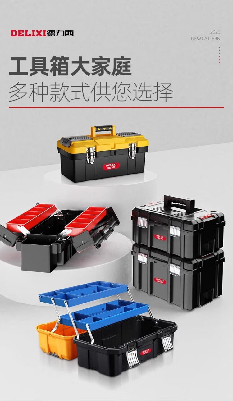 Delixi Tool Box Storage Box Hardware Large Industrial Grade Home Portable Car Multifunctional Maintenance Electrician Extra Large Brand New Material 18-inch Seiko Model/Reinforced Rib Design + Box